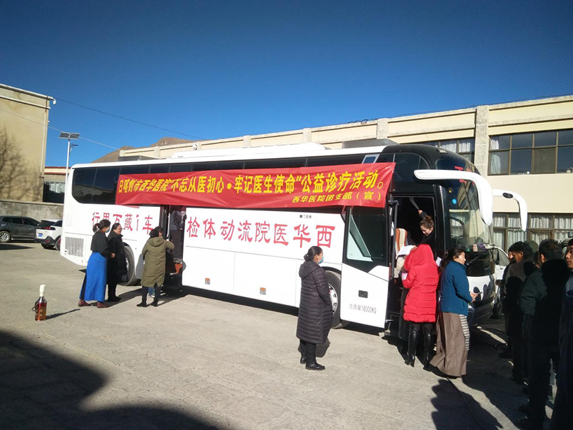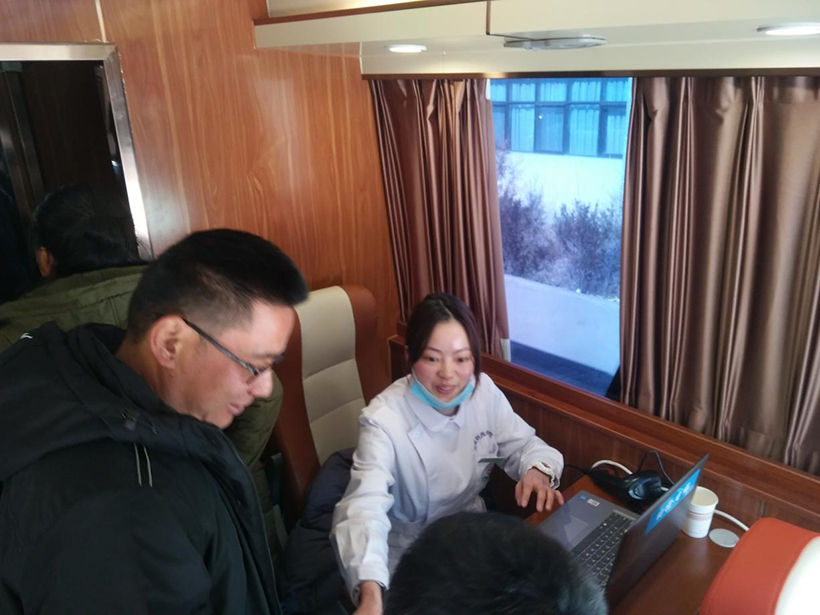 我院高度重視此次公益活動,組成15人義診巡回醫(yī)療服務(wù)隊,委派體檢車輛2輛,攜帶彩超1臺、血糖儀2部、血氧飽和度檢測儀各2部及聽診器等醫(yī)療設(shè)備對日喀則市教育局進(jìn)行免費義診活動。主要義診內(nèi)容包括:內(nèi)科常規(guī)檢查、外科常規(guī)檢查、胸部正位片、肝膽脾胰彩超、雙腎輸尿管彩超、子宮附件彩超、前列腺彩超、尿常規(guī)、血常規(guī)、腎功能、血脂四項、心電圖、血壓監(jiān)測、心肺聽診、血糖檢測、血氧飽和度等并建立健康檔案。