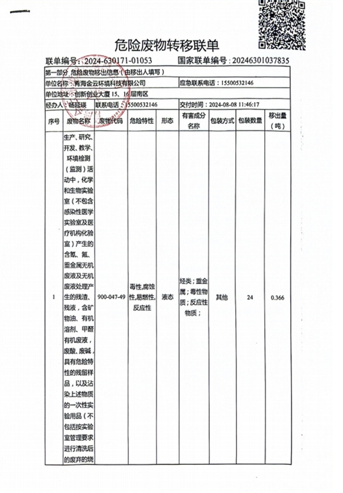 | 上一篇:危險廢物轉(zhuǎn)移聯(lián)單 | 下一篇:金云科技時刻在行動 |