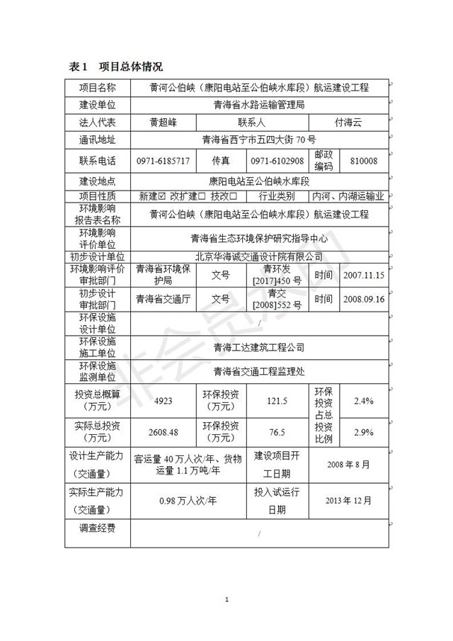 黃河公伯峽(康楊電站至公伯峽水庫段)航運建設(shè)工程竣工環(huán)境保護驗收調(diào)查報告表公示發(fā)布日期:(2018-11-16) 點擊次數(shù):2580 |