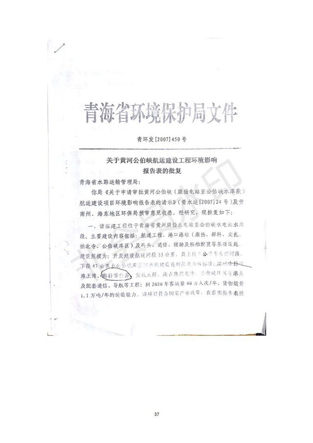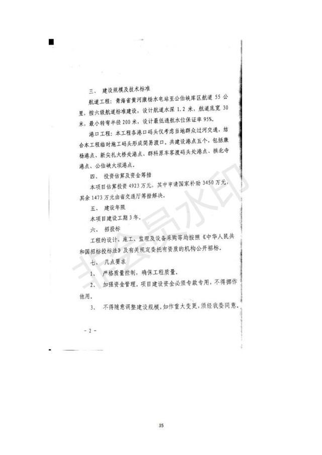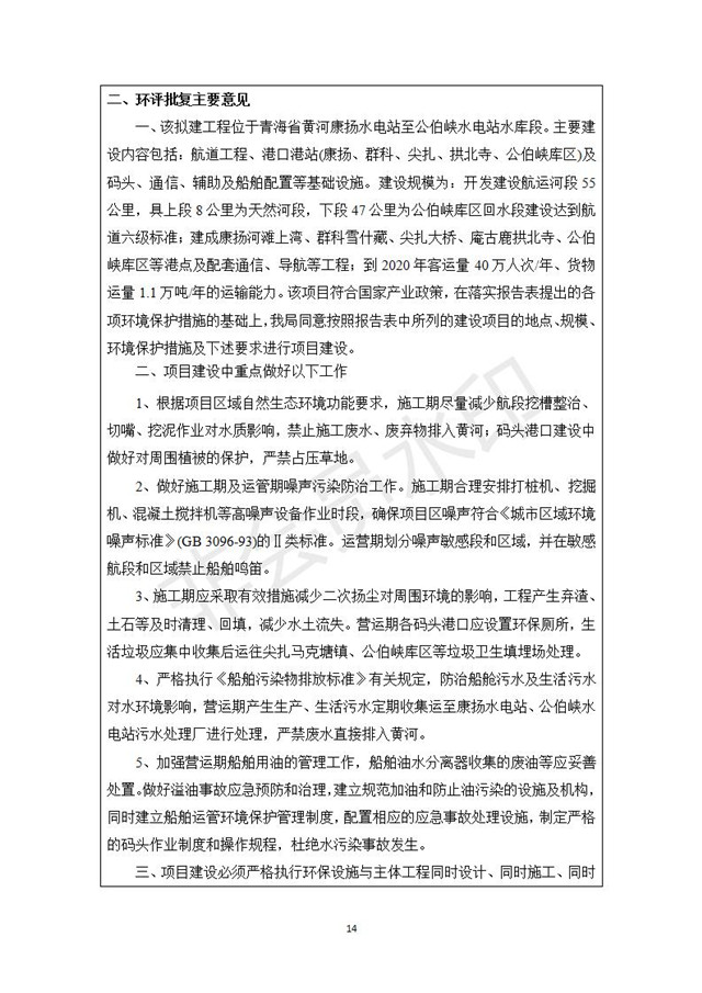 黃河公伯峽(康楊電站至公伯峽水庫段)航運建設(shè)工程