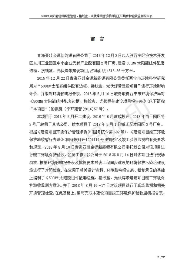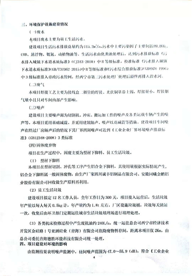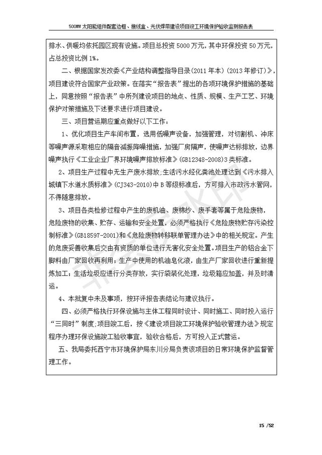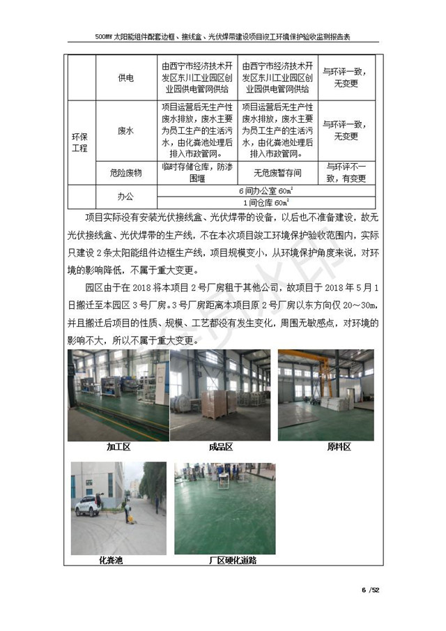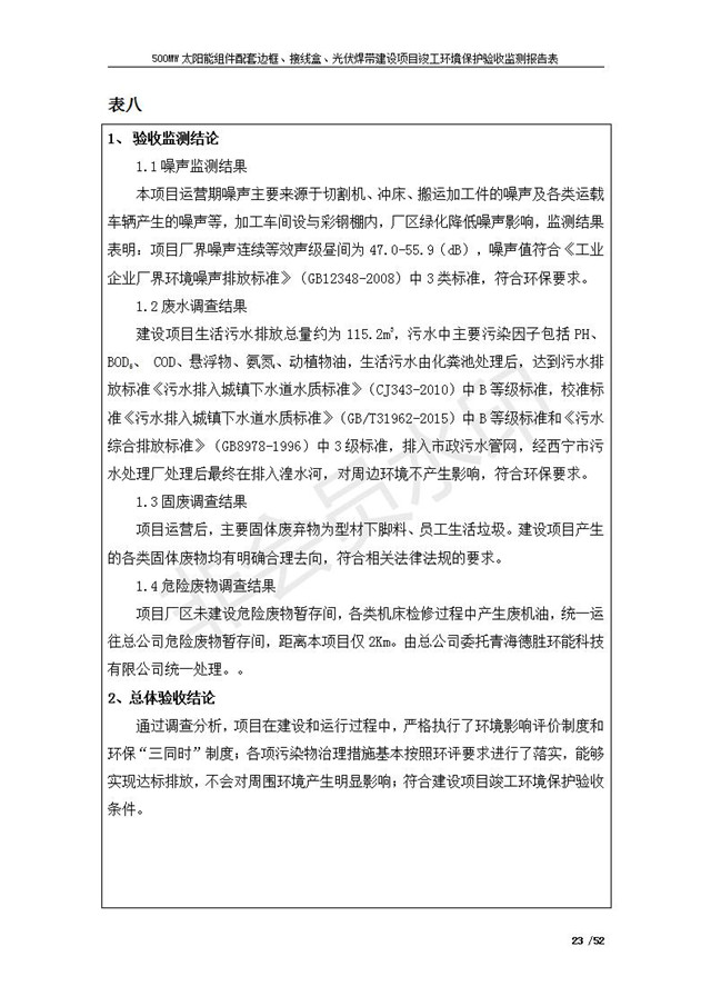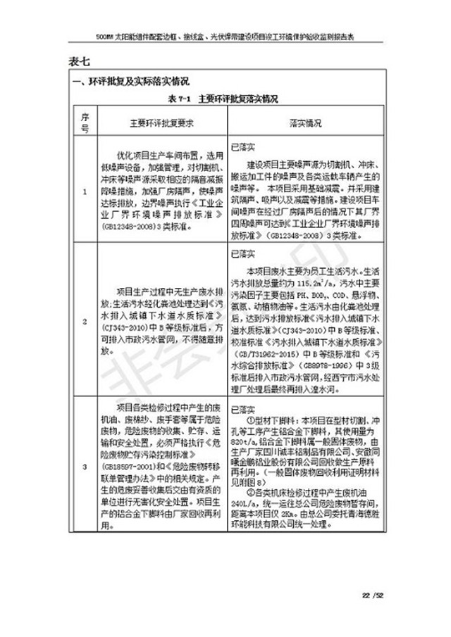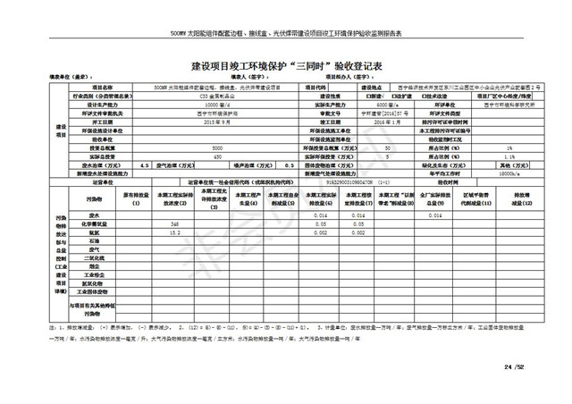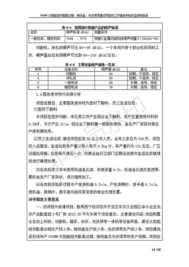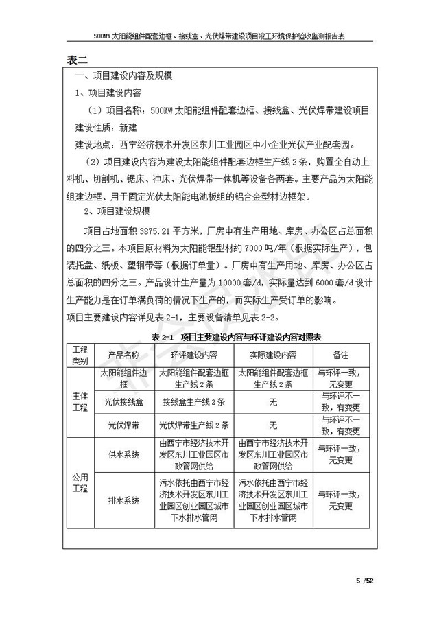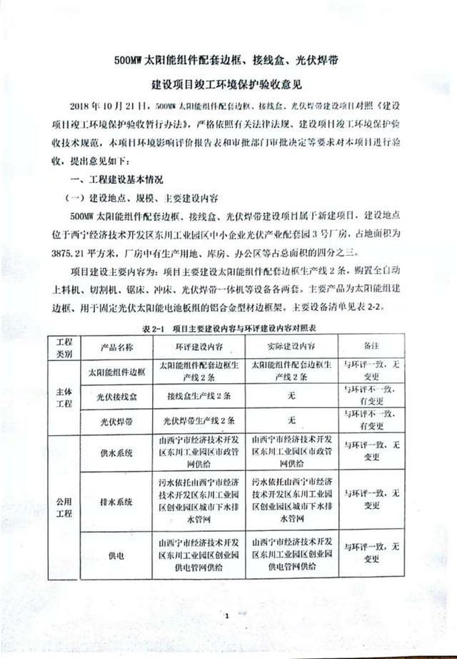 500MW太陽能組件配套邊框、接線盒、光伏焊帶建設項目竣工環(huán)境保護驗收監(jiān)測報告表公示