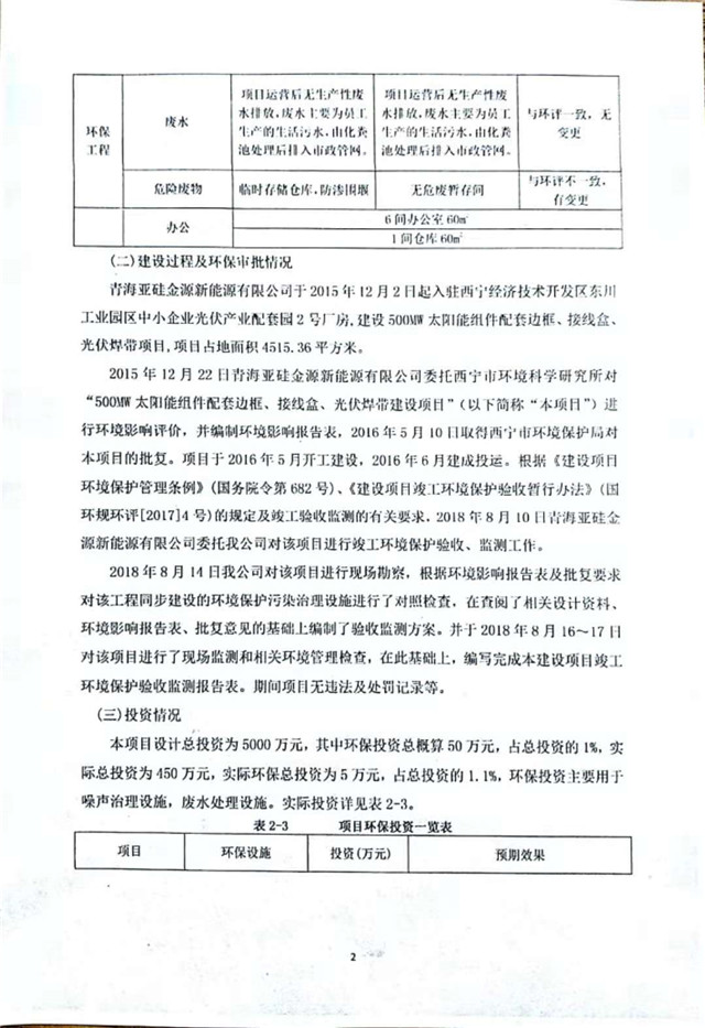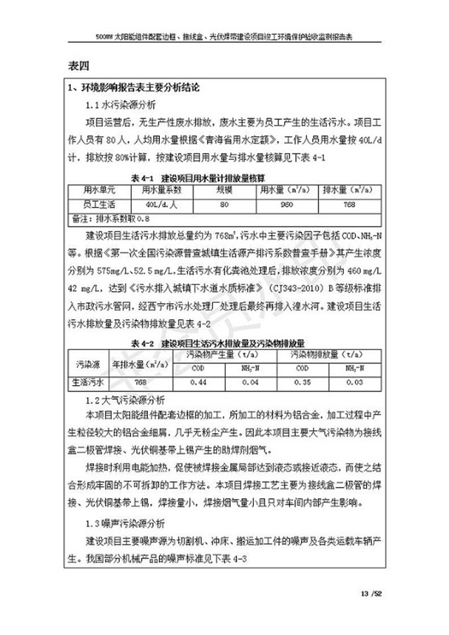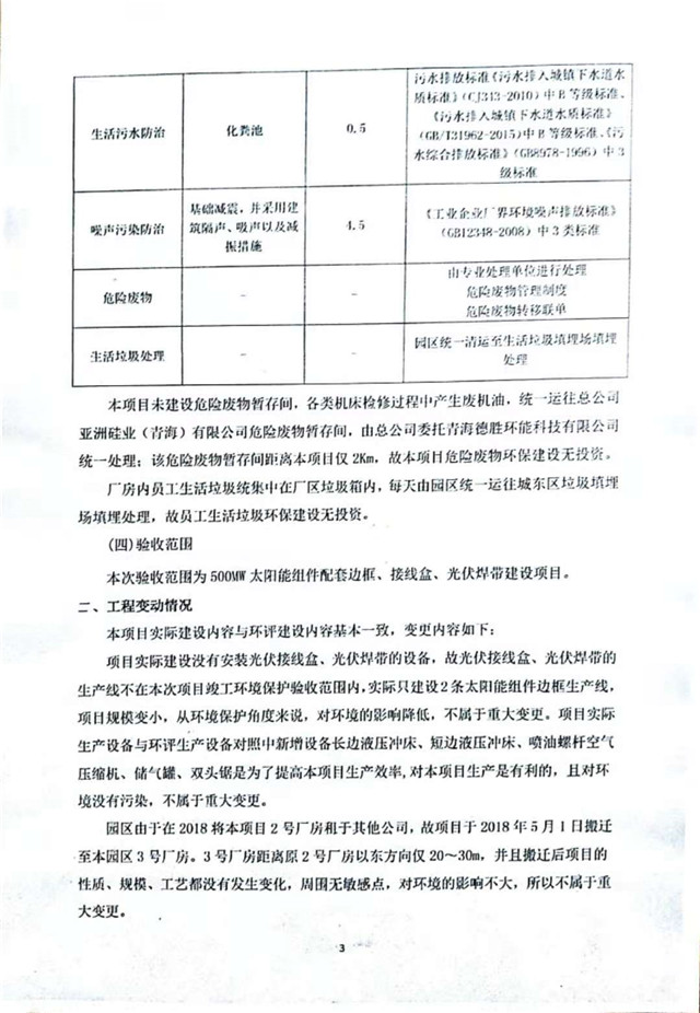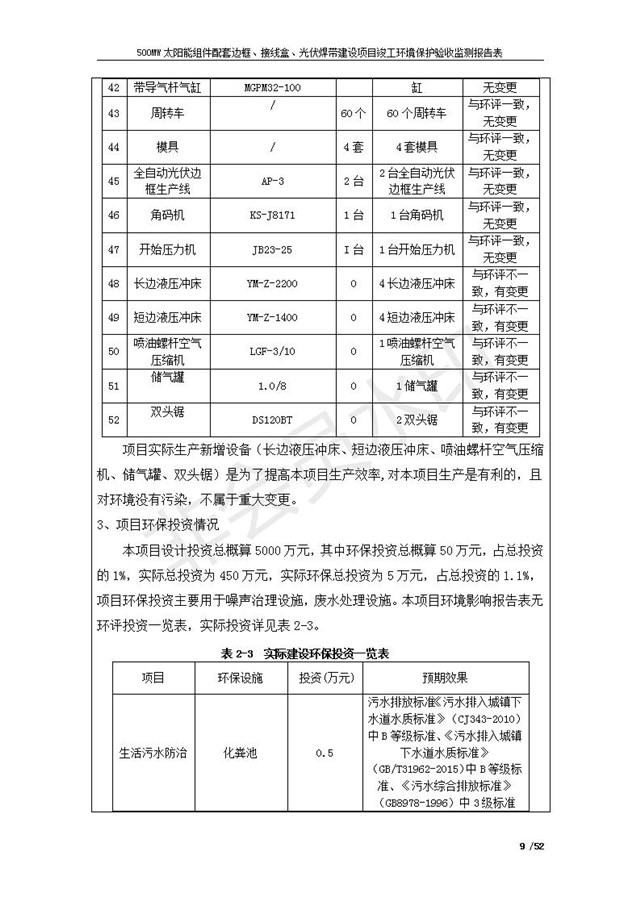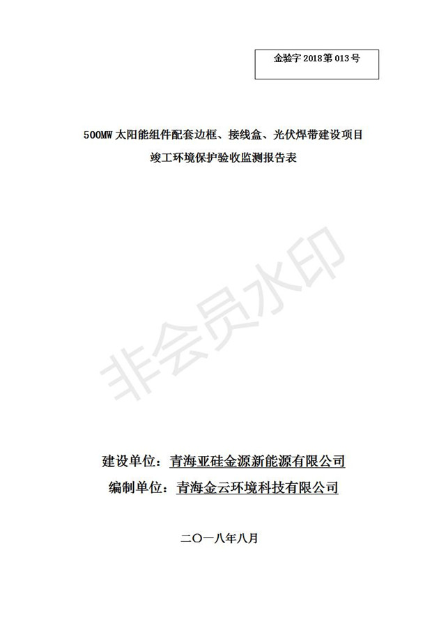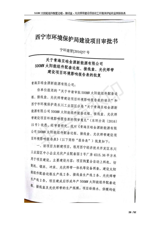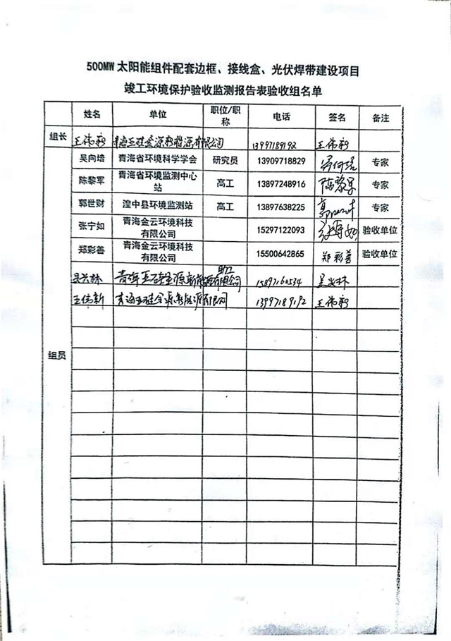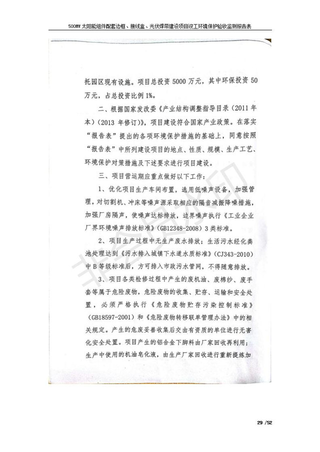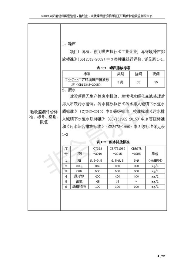 500MW太陽能組件配套邊框、接線盒、光伏焊帶建設項目竣工環(huán)境保護驗收監(jiān)測報告表公示