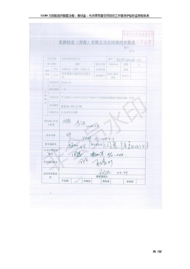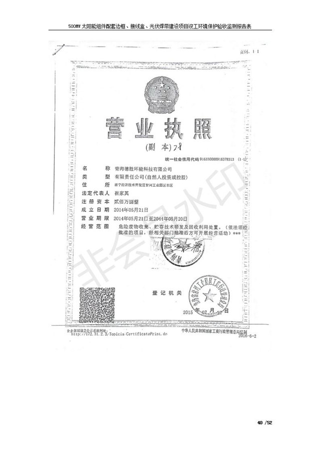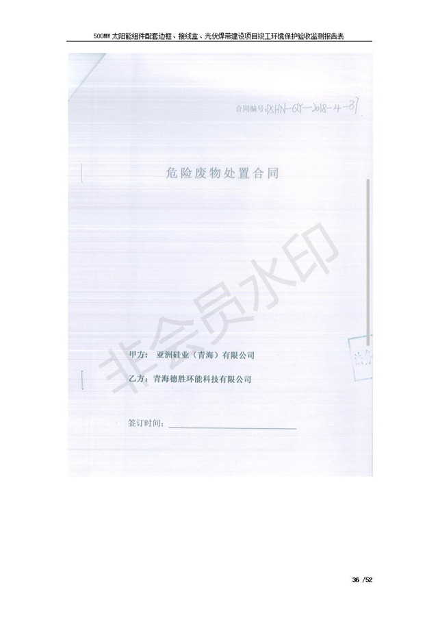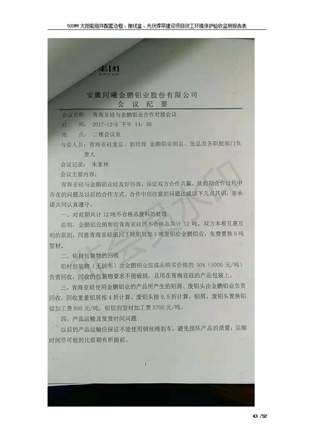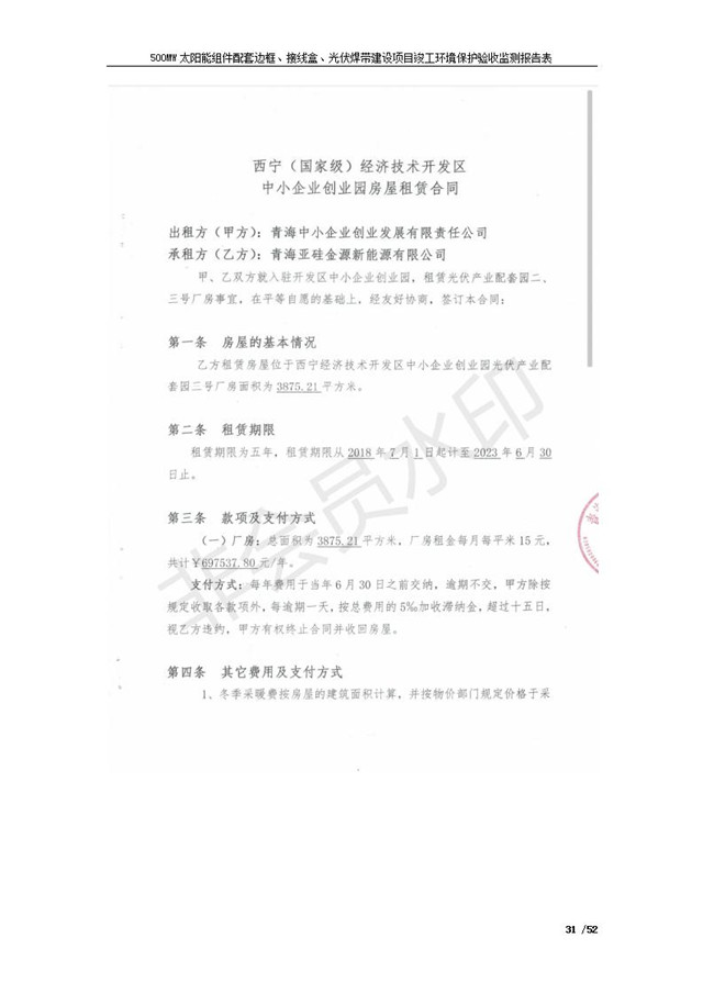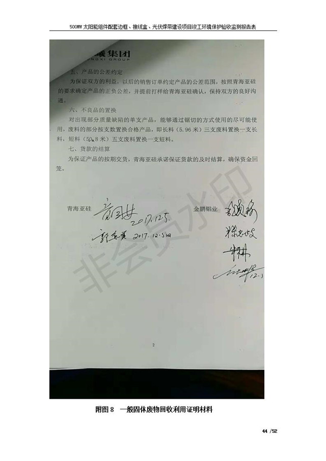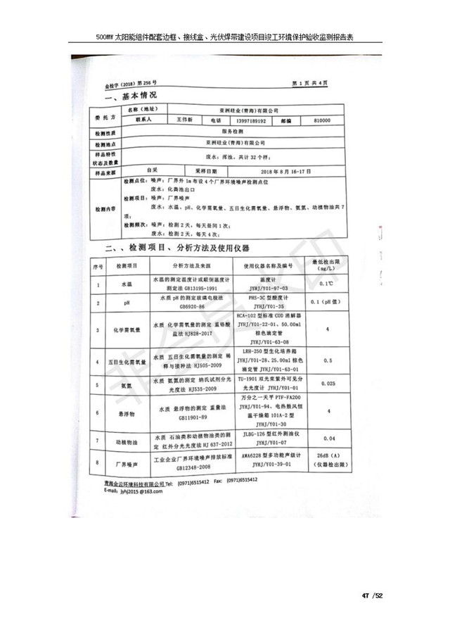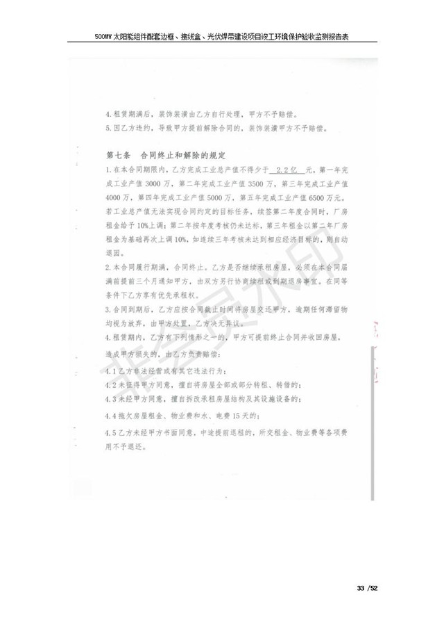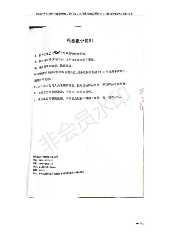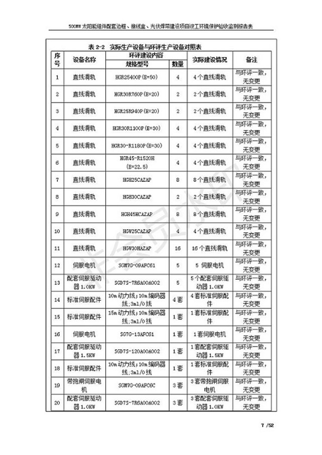 500MW太陽能組件配套邊框、接線盒、光伏焊帶建設項目竣工環(huán)境保護驗收監(jiān)測報告表公示