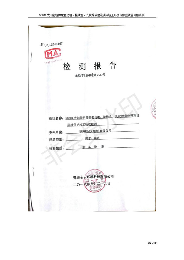 500MW太陽能組件配套邊框、接線盒、光伏焊帶建設項目竣工環(huán)境保護驗收監(jiān)測報告表公示發(fā)布日期:(2018-11-16) 點擊次數(shù):2230 |