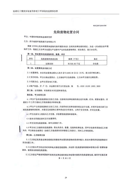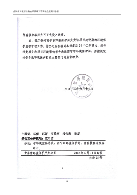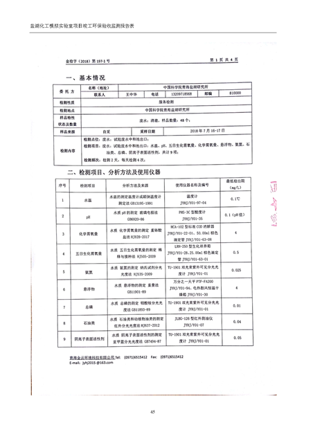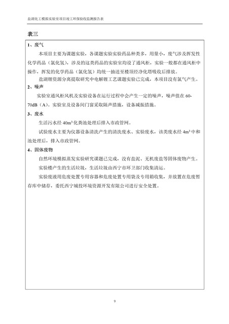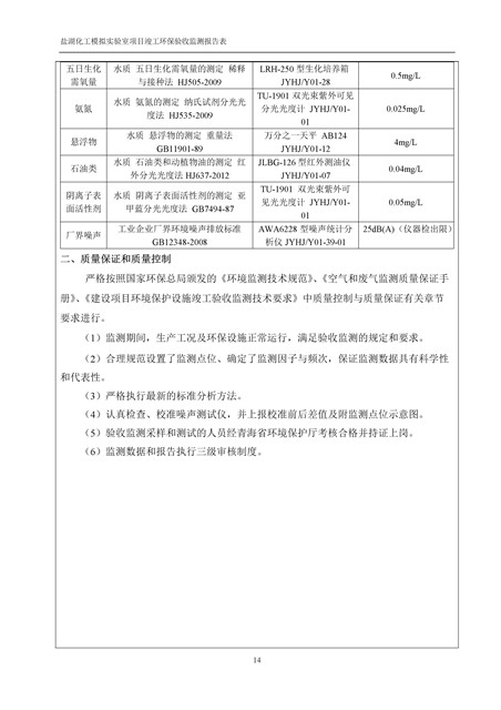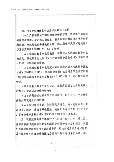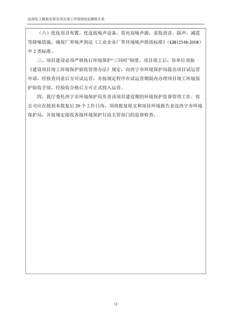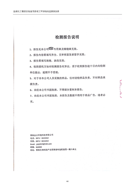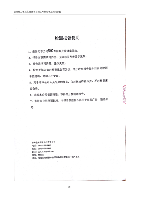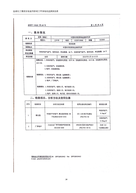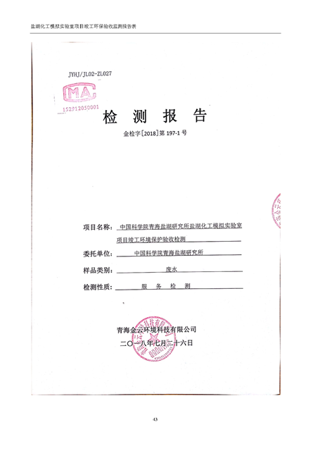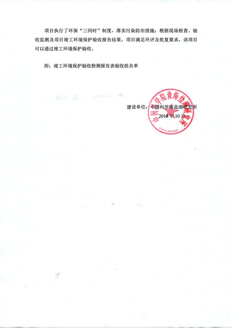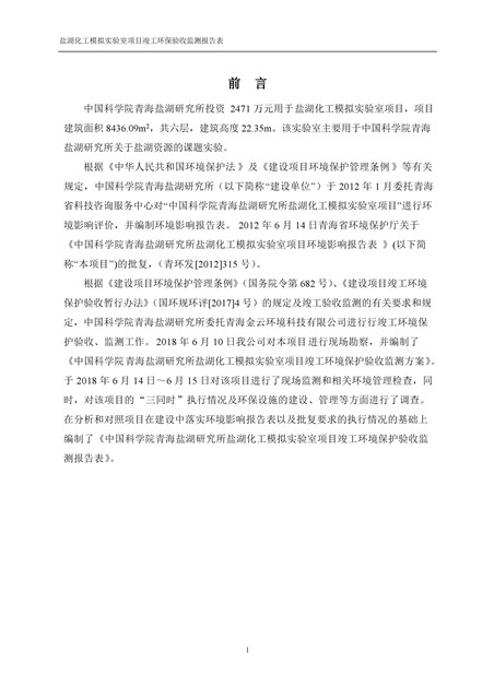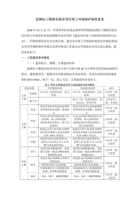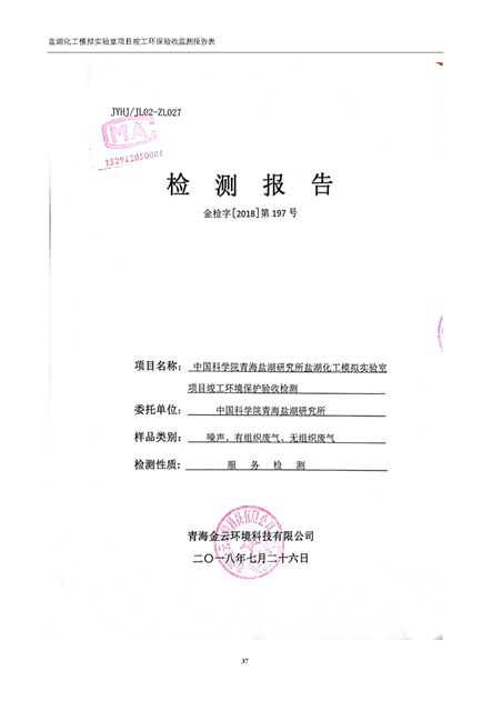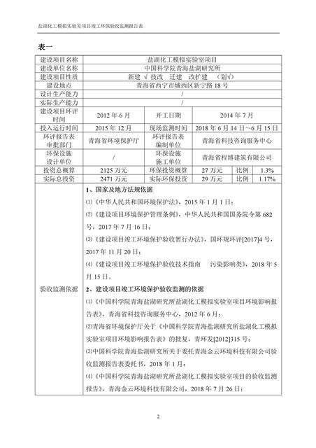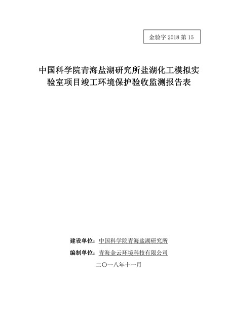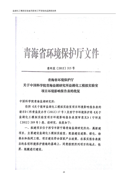 中國科學院青海鹽湖研究所鹽湖化工模擬實驗室項目竣工環(huán)境保護驗收監(jiān)測報告表公示發(fā)布日期:(2018-11-23) 點擊次數(shù):2314 |
