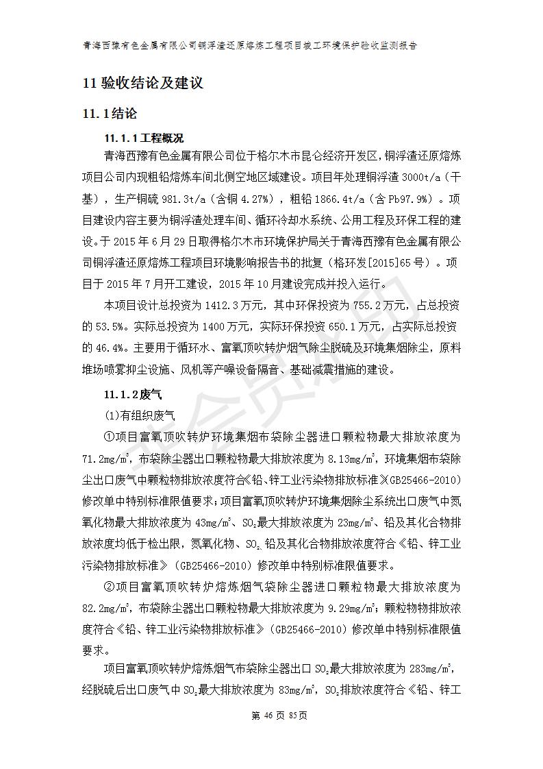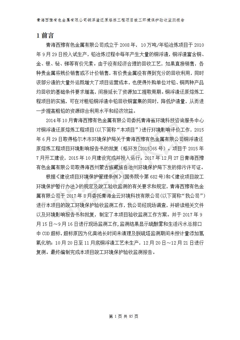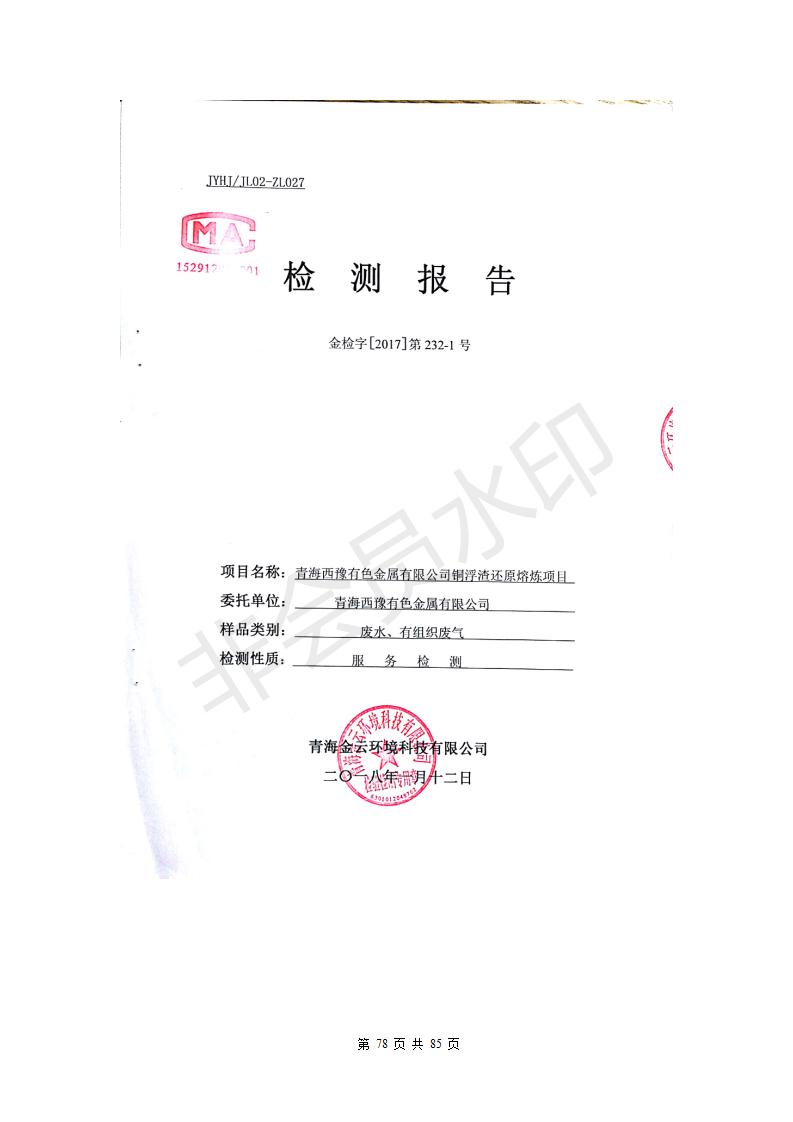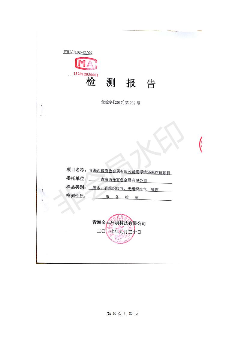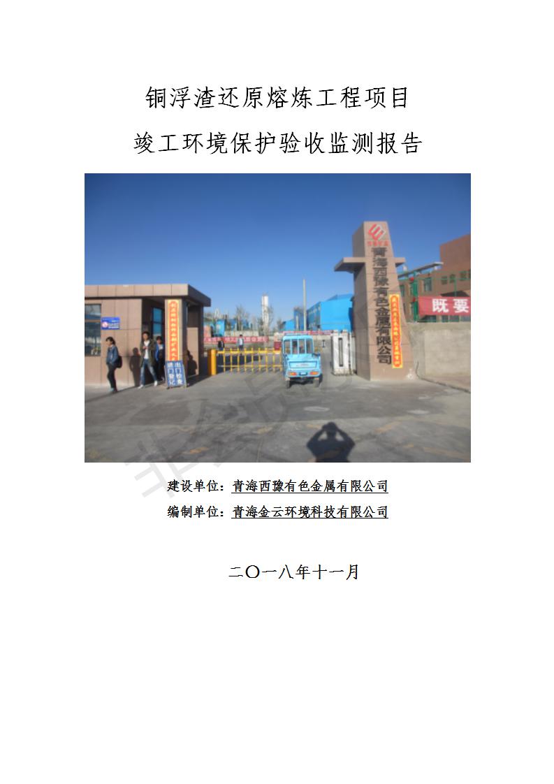 青海西豫有色金屬有限公司銅浮渣還原熔煉工程項(xiàng)目竣工環(huán)境保護(hù)驗(yàn)收監(jiān)測(cè)報(bào)告公示發(fā)布日期:(2018-11-23) 點(diǎn)擊次數(shù):2743 |