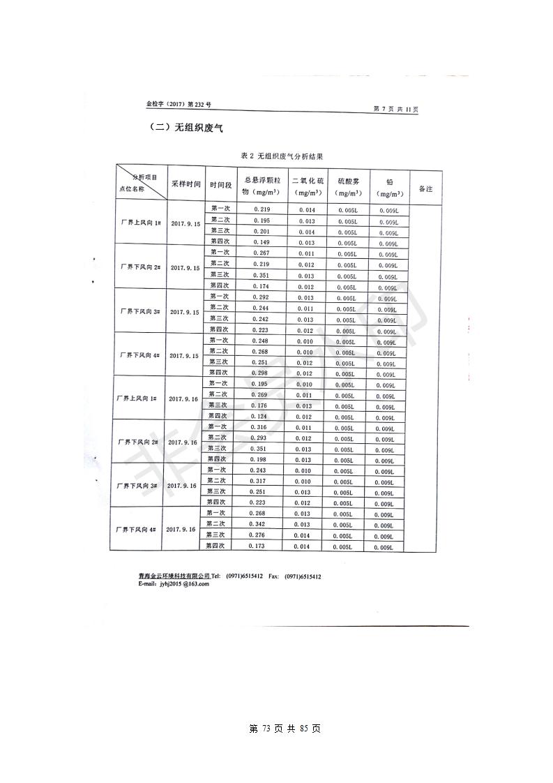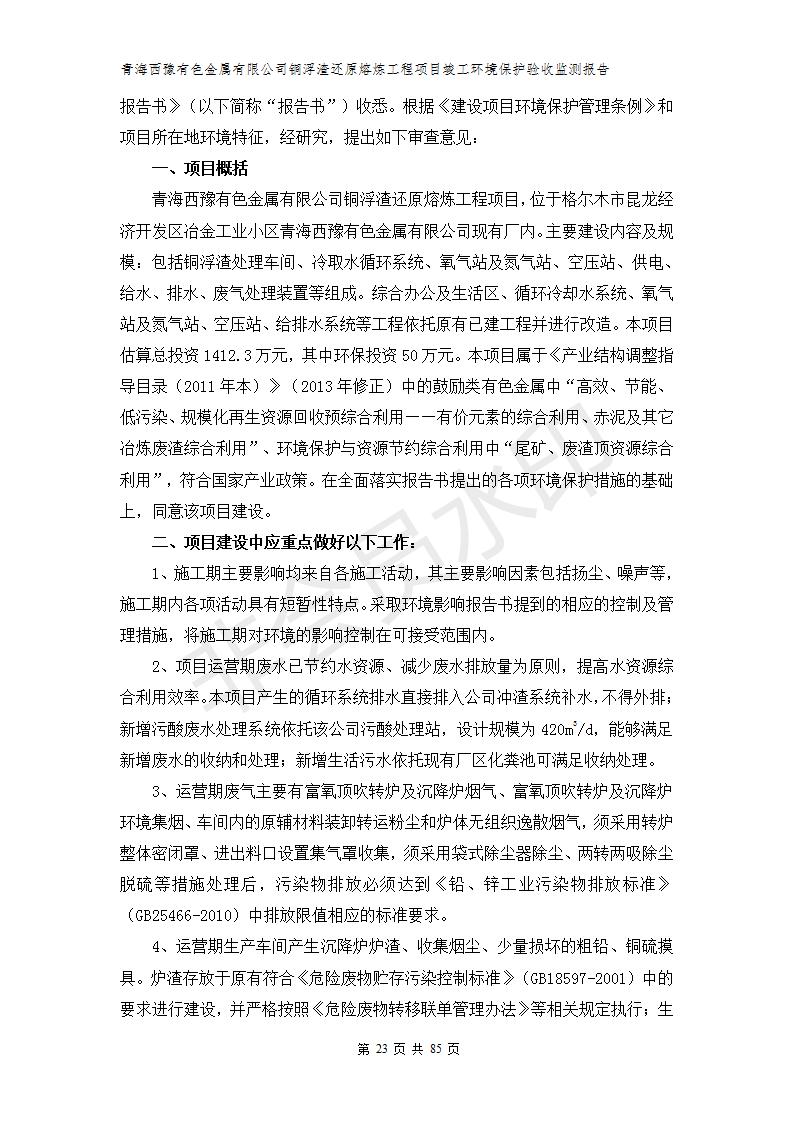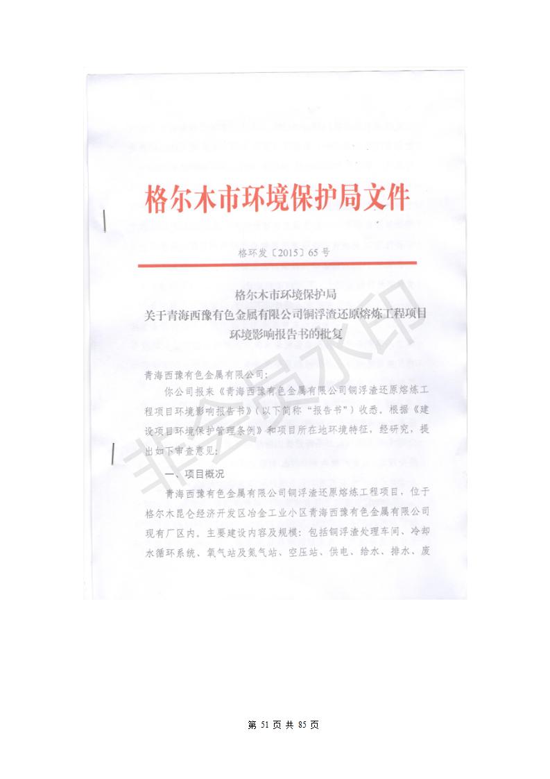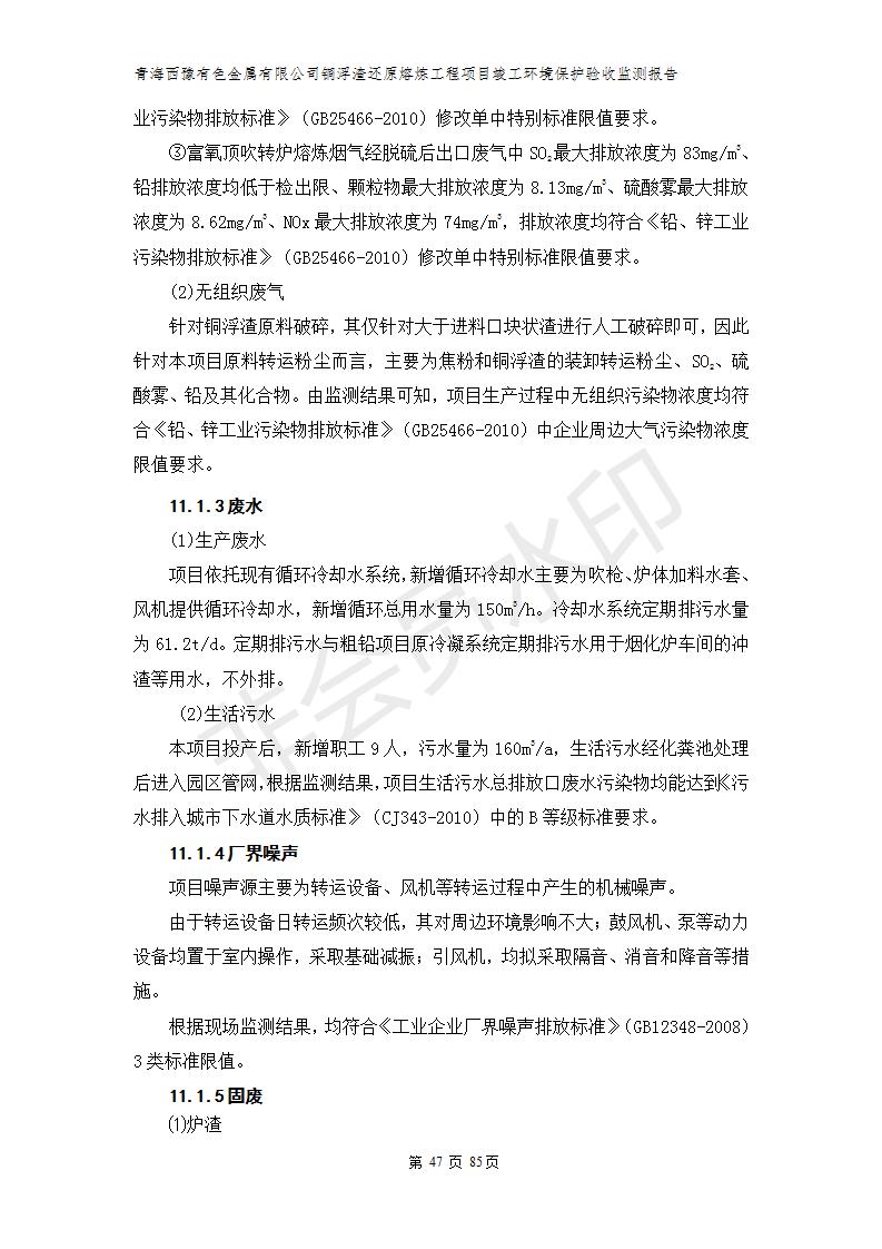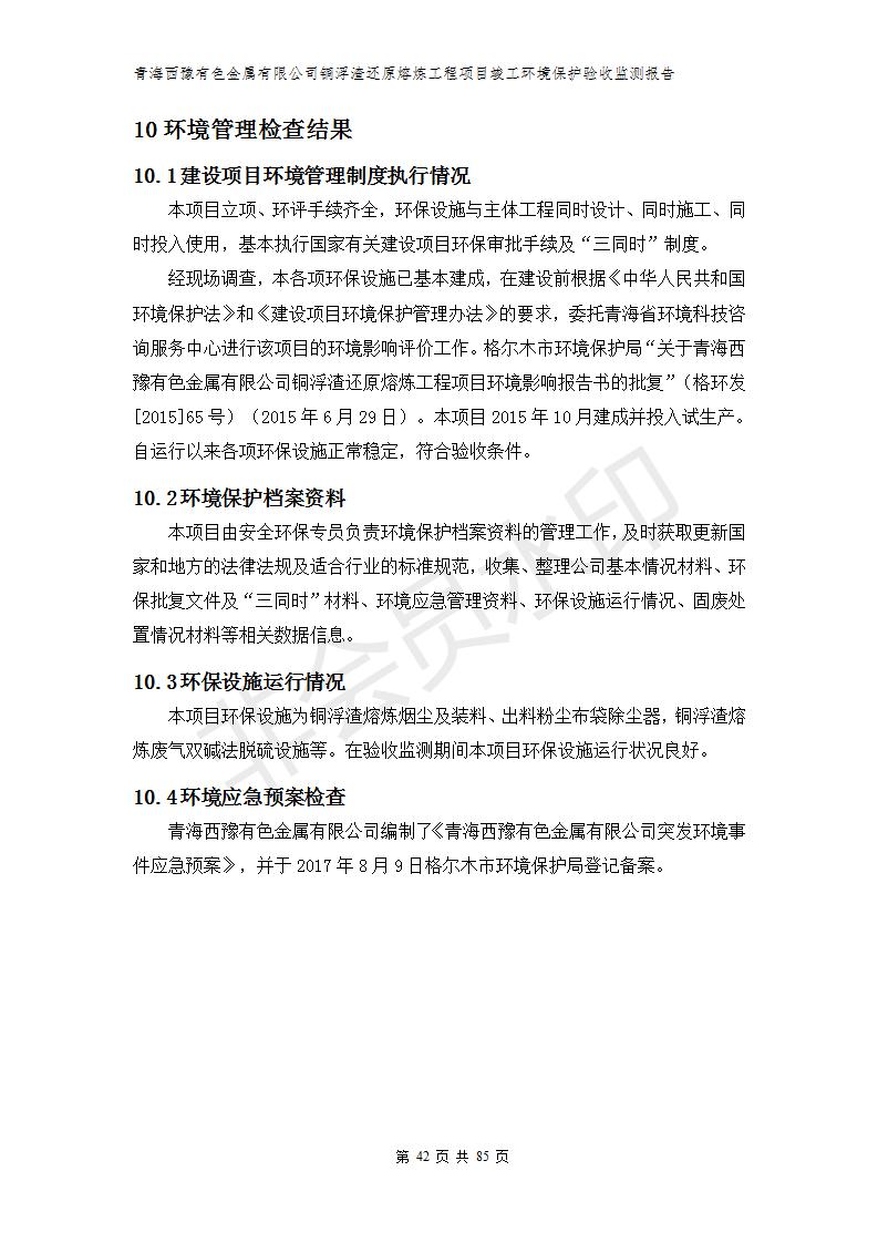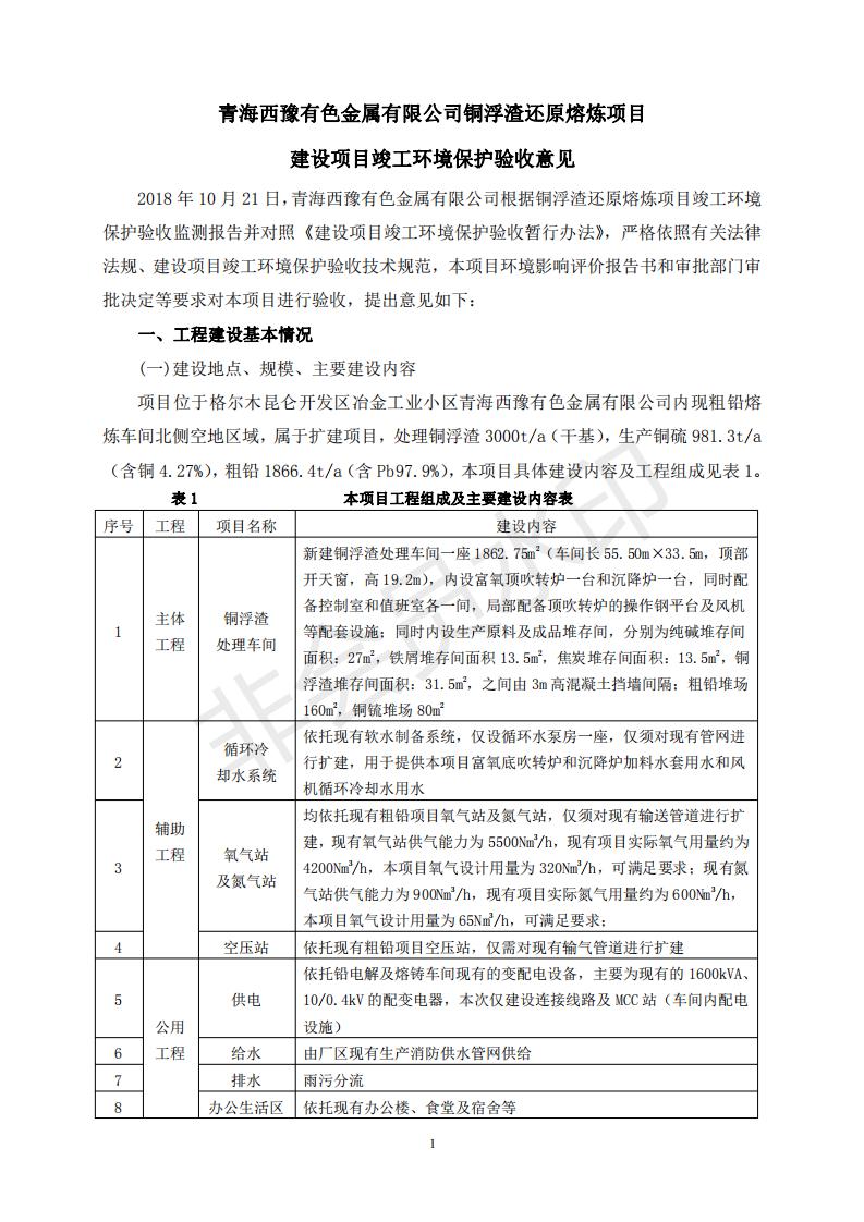 青海西豫有色金屬有限公司銅浮渣還原熔煉工程項(xiàng)目竣工環(huán)境保護(hù)驗(yàn)收監(jiān)測(cè)報(bào)告公示發(fā)布日期:(2018-11-23) 點(diǎn)擊次數(shù):2743 |
