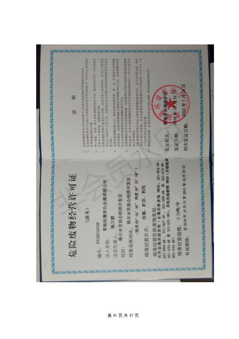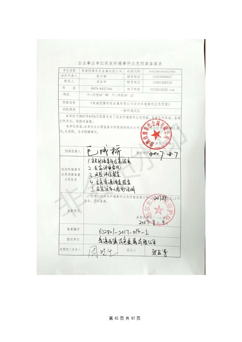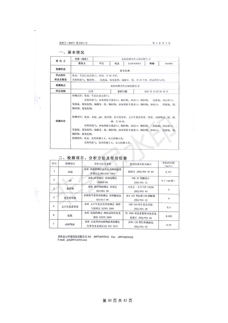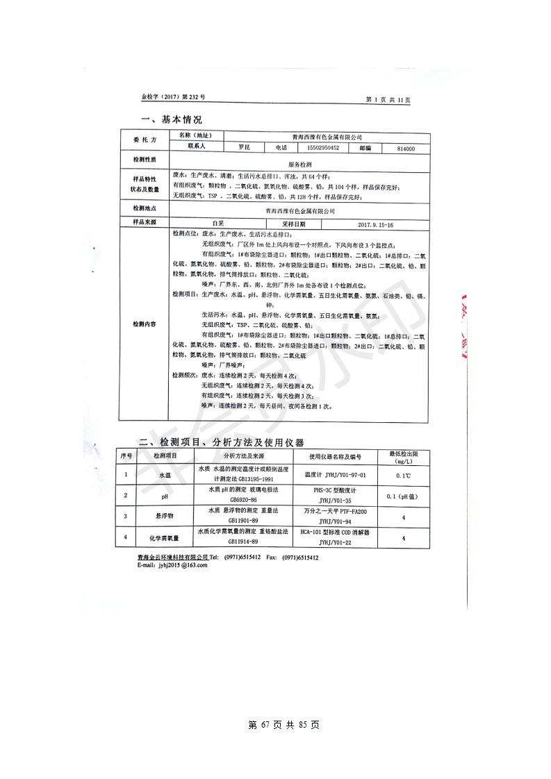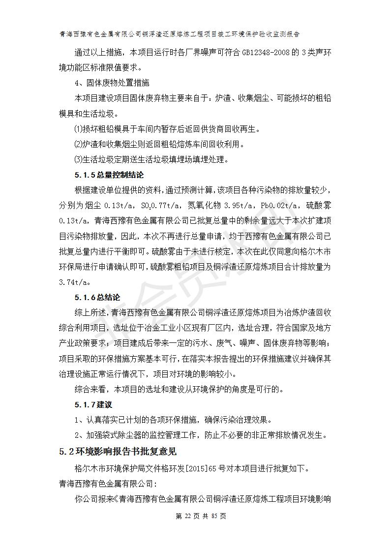 青海西豫有色金屬有限公司銅浮渣還原熔煉工程項(xiàng)目竣工環(huán)境保護(hù)驗(yàn)收監(jiān)測(cè)報(bào)告公示發(fā)布日期:(2018-11-23) 點(diǎn)擊次數(shù):2743 |