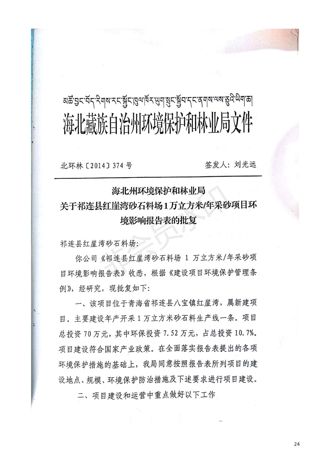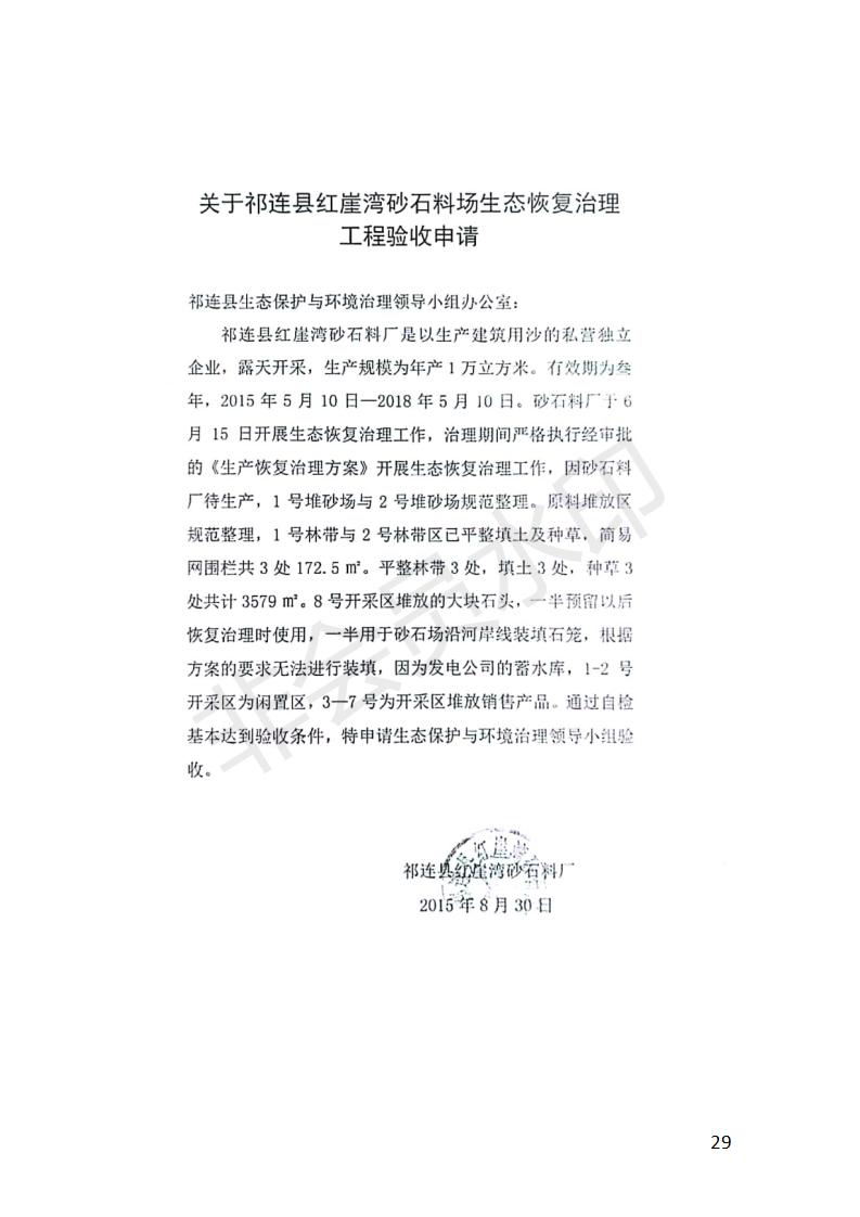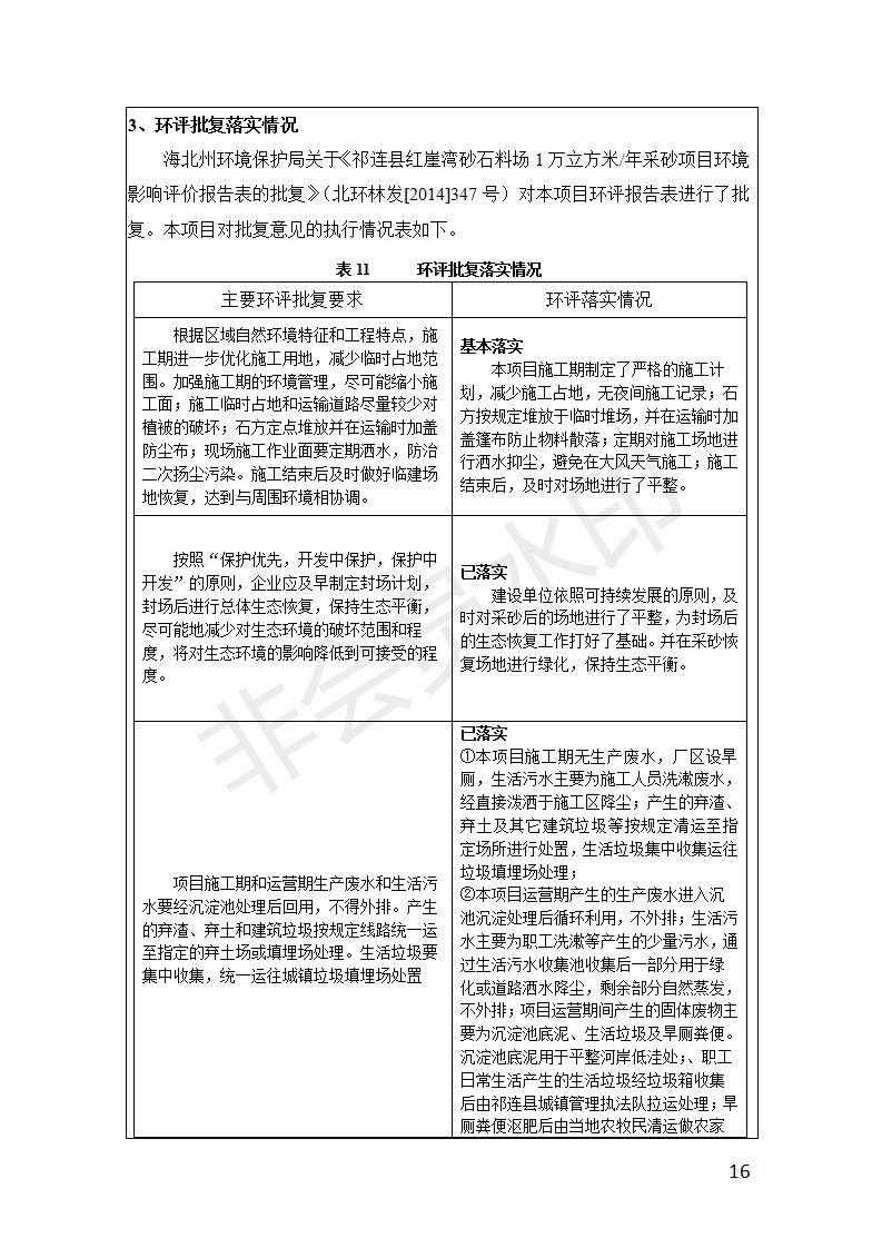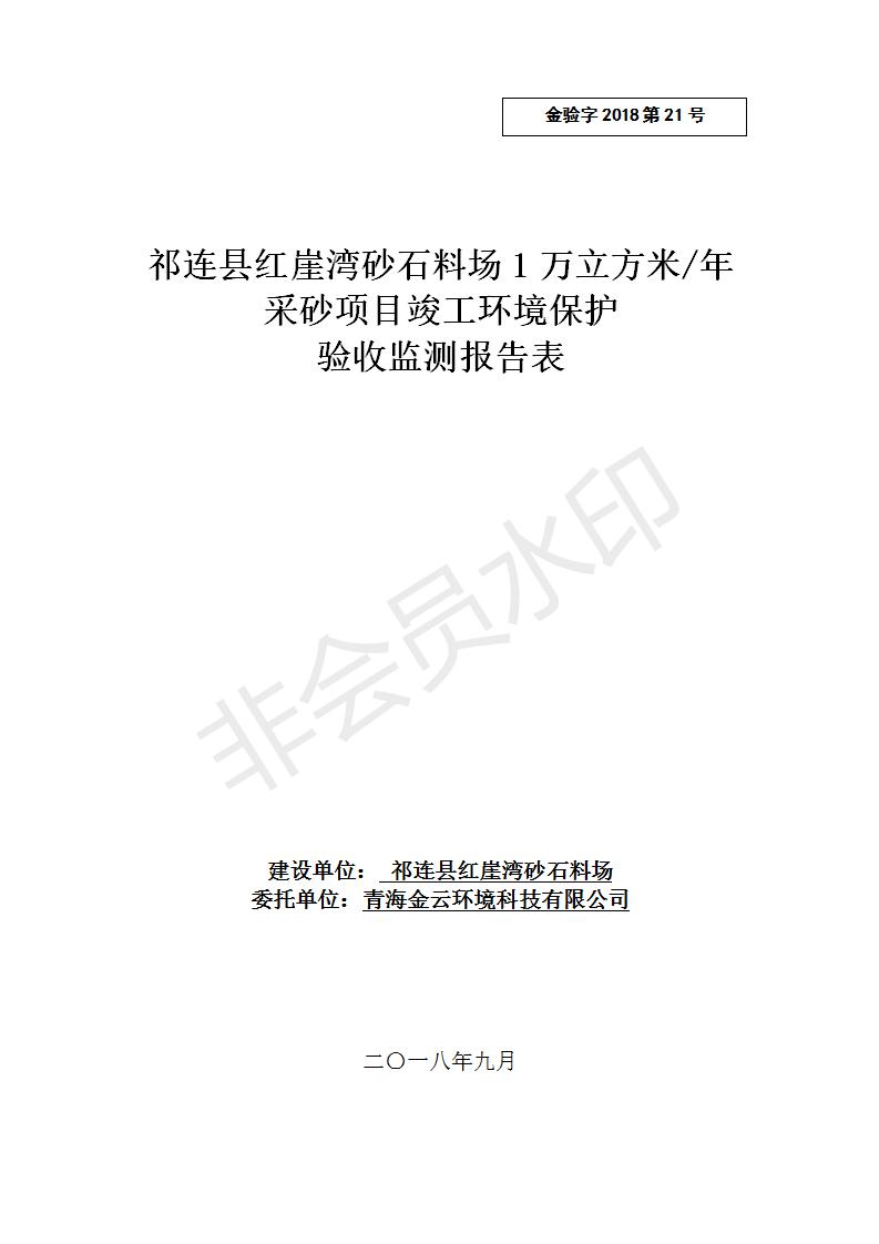 祁連縣紅崖灣砂石料場1萬立方米/年采砂項目竣工環(huán)境保護驗收監(jiān)測報告表公示