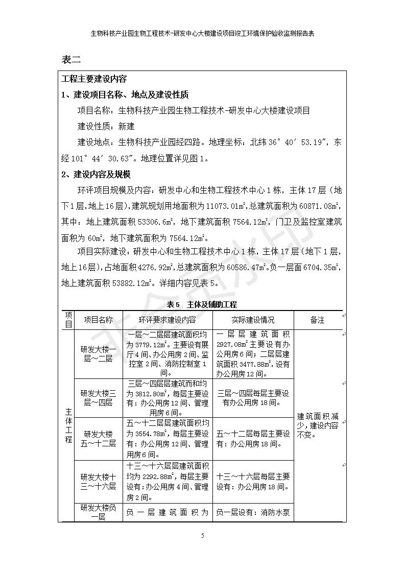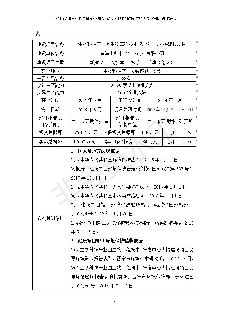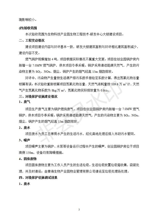 生物科技產(chǎn)業(yè)園生物工程技術(shù)-研發(fā)中心大樓建設項目竣工環(huán)境保護驗收監(jiān)測報告表公示