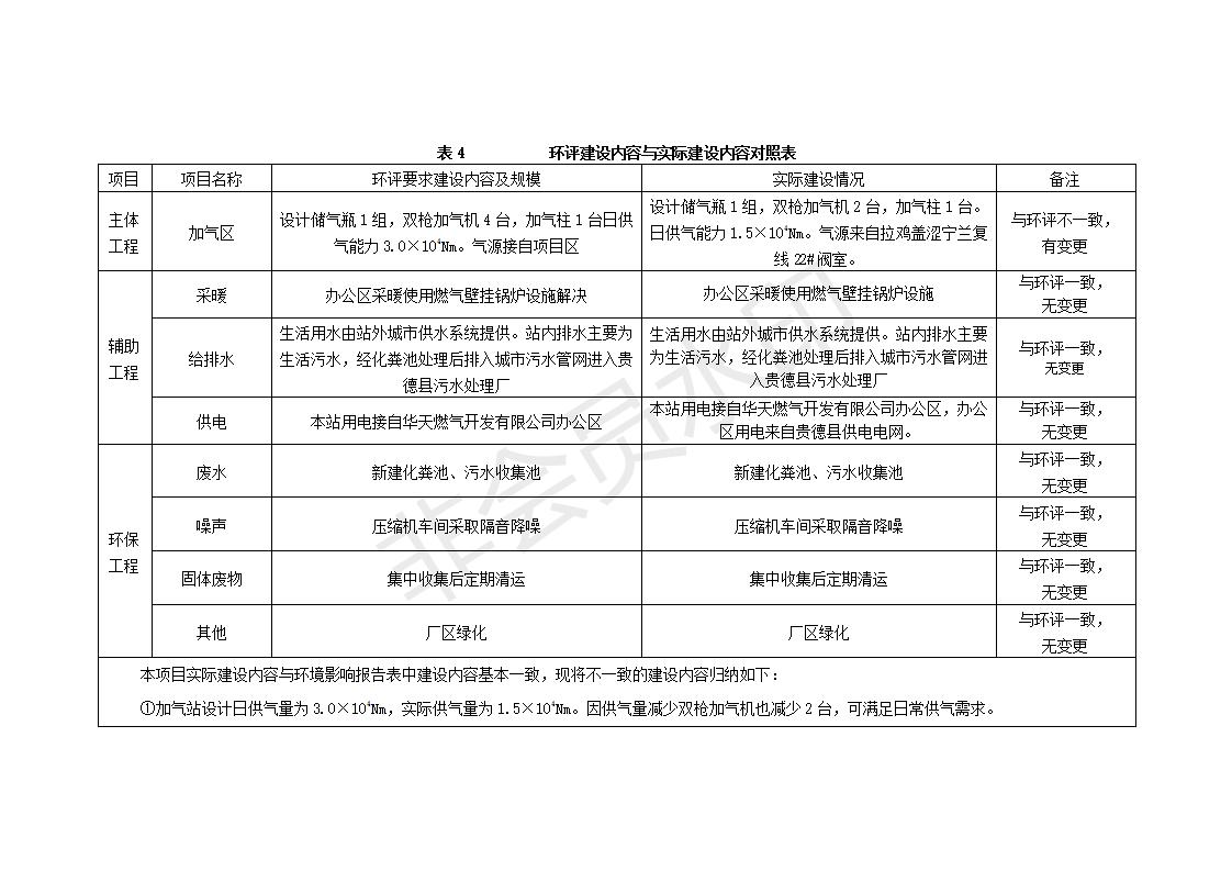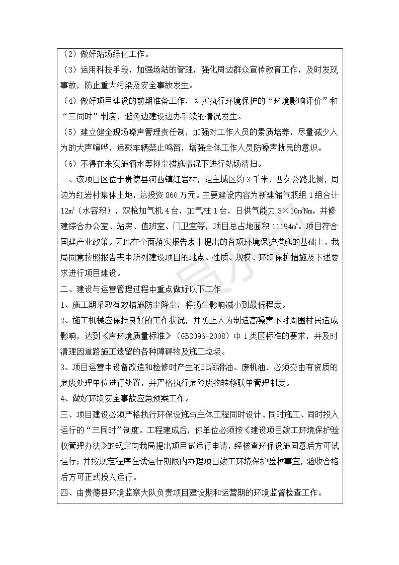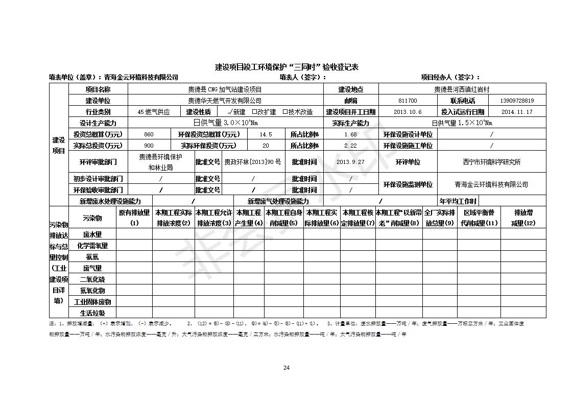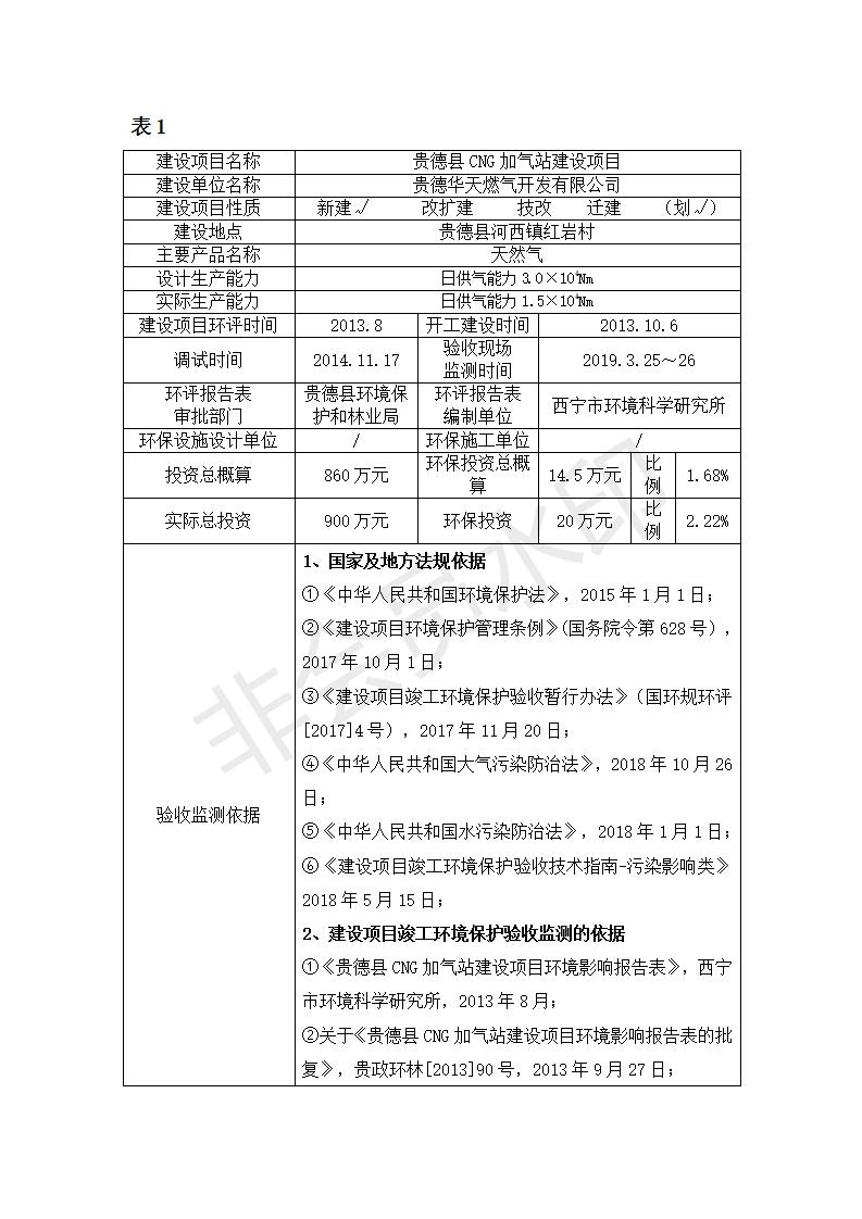 根據(jù)中華人民共和國(guó)務(wù)院令第682號(hào)《國(guó)務(wù)院關(guān)于修改〈建設(shè)項(xiàng)目環(huán)境保護(hù)管理?xiàng)l例〉的決定》和《建設(shè)項(xiàng)目竣工環(huán)境保護(hù)驗(yàn)收暫行辦法》(國(guó)務(wù)院令682號(hào)),青藏高原特色生物資源綠色開(kāi)發(fā)工程研究中心建設(shè)項(xiàng)目竣工環(huán)境保護(hù)驗(yàn)收內(nèi)容(包括竣工環(huán)境保護(hù)驗(yàn)收調(diào)查報(bào)告和驗(yàn)收意見(jiàn))公示如下: 一、項(xiàng)目名稱:貴德縣CNG加氣站建設(shè)項(xiàng)目 二、地點(diǎn):貴德縣河西鎮(zhèn)紅巖村 三、建設(shè)單位:貴德華天燃?xì)忾_(kāi)發(fā)有限公司 四、建設(shè)內(nèi)容:日供氣量為1.5×104Nm的加氣站 五、公示時(shí)間:二〇一九年五月二十九日至二〇一九年六月二十五日 六、聯(lián)系人:張工 公示期間,對(duì)上述公示內(nèi)容如有異議,請(qǐng)以書(shū)面形式反饋,個(gè)人須署真實(shí)姓名,單位須加蓋公章。
