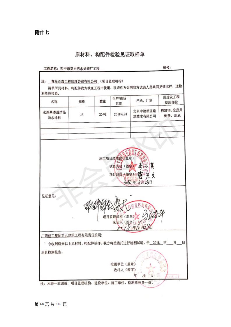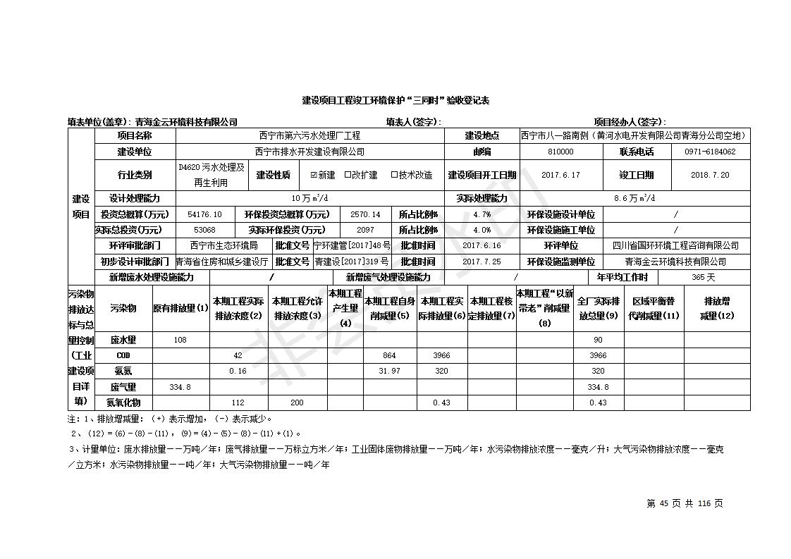 根據(jù)中華人民共和國(guó)國(guó)務(wù)院令第682號(hào)《國(guó)務(wù)院關(guān)于修改〈建設(shè)項(xiàng)目環(huán)境保護(hù)管理?xiàng)l例〉的決定》和《建設(shè)項(xiàng)目竣工環(huán)境保護(hù)驗(yàn)收暫行辦法》(國(guó)務(wù)院令682號(hào)),西寧市第六污水處理廠工程(包括竣工環(huán)境保護(hù)驗(yàn)收監(jiān)測(cè)報(bào)告和驗(yàn)收意見)公示如下。 一、項(xiàng)目名稱:西寧市第六污水處理廠工程 二、地點(diǎn):西寧市第六污水處理廠工程建于西寧市八一路南側(cè)(黃河水電開發(fā)有限公司青海分公司空地) 三、建設(shè)單位:西寧市排水開發(fā)建設(shè)有限公司 四、建設(shè)內(nèi)容:處理生活污水規(guī)模為10萬(wàn)m3/d污水處理廠、輔助設(shè)施、環(huán)保設(shè)施等。 五、聯(lián)系人:張工 六、聯(lián)系電話:0971-6515411 七、公示時(shí)間:二〇一九年七月十一日至二〇一九年八月七日 公示期間,對(duì)上述公示內(nèi)容如有異議,請(qǐng)以書面形式反饋,個(gè)人須署真實(shí)姓名,單位須加蓋公章。