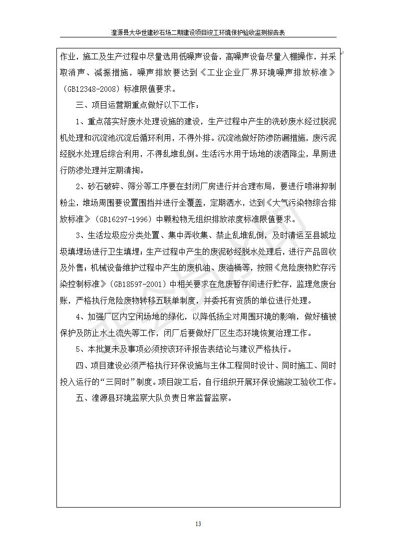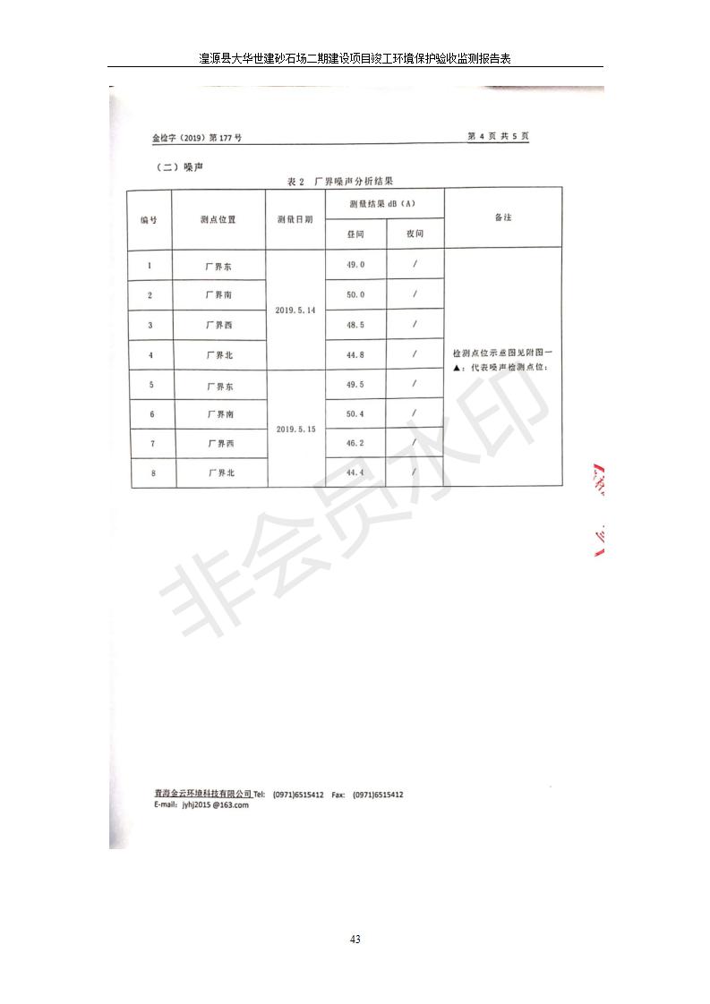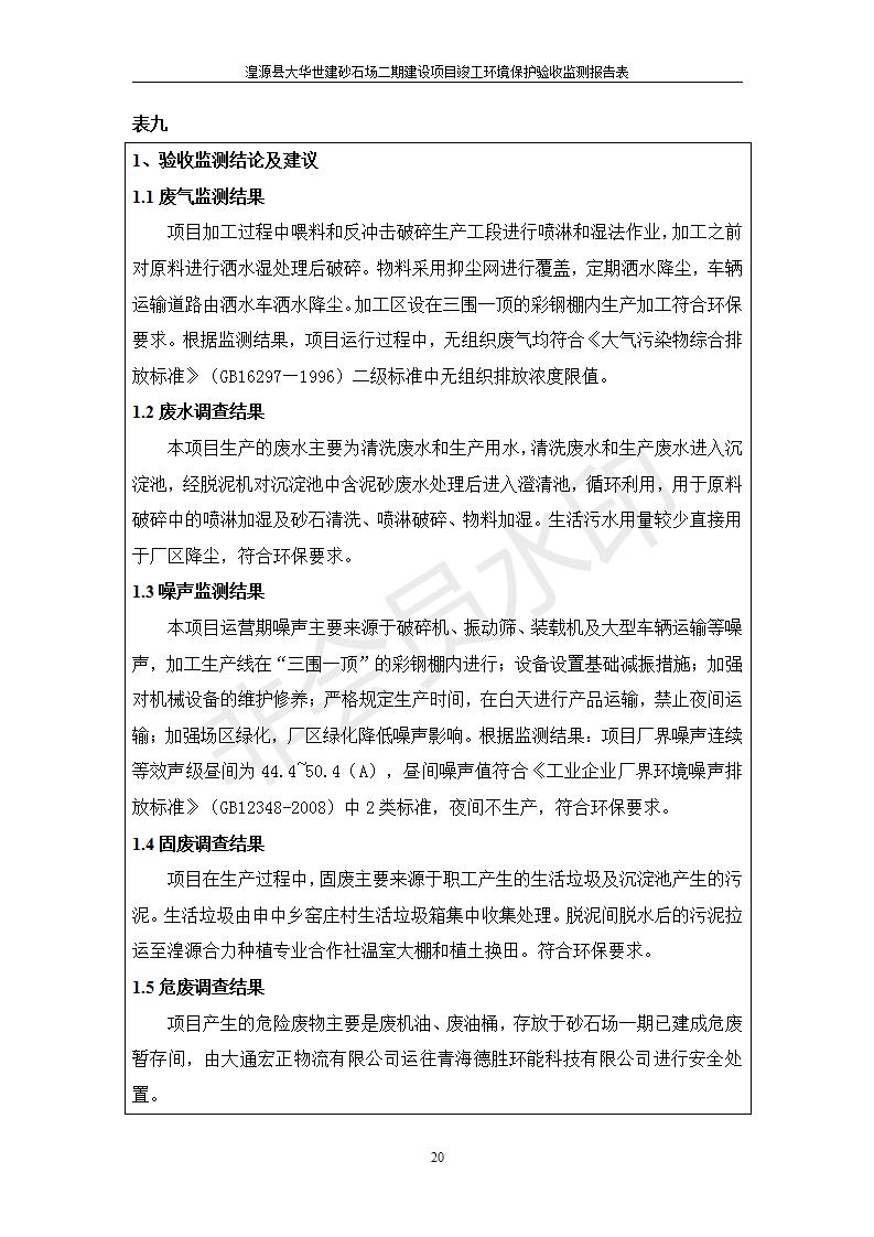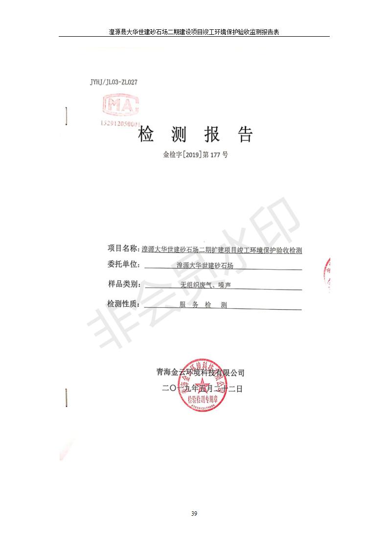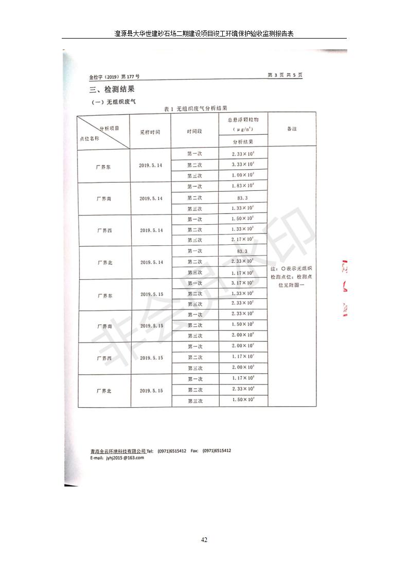 湟源大華世建砂石場湟源縣大華世建砂石場二期建設(shè)項(xiàng)目工環(huán)境保護(hù)驗(yàn)收監(jiān)測(cè)報(bào)告表公示發(fā)布日期:(2019-7-25) 點(diǎn)擊次數(shù):2533 |