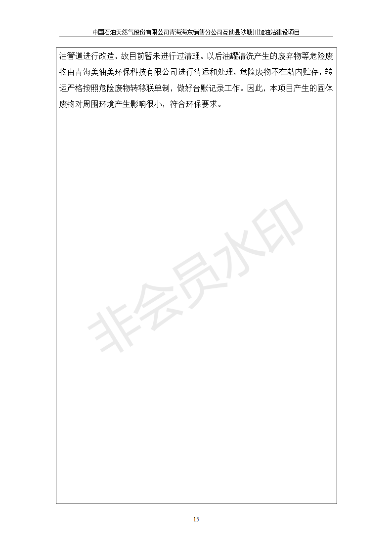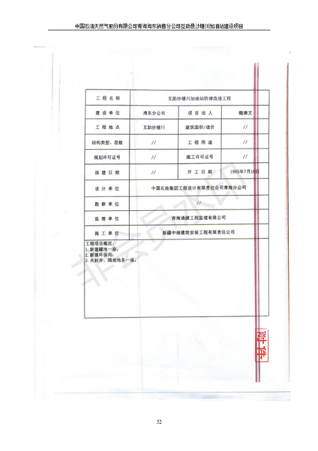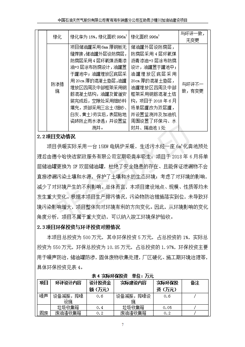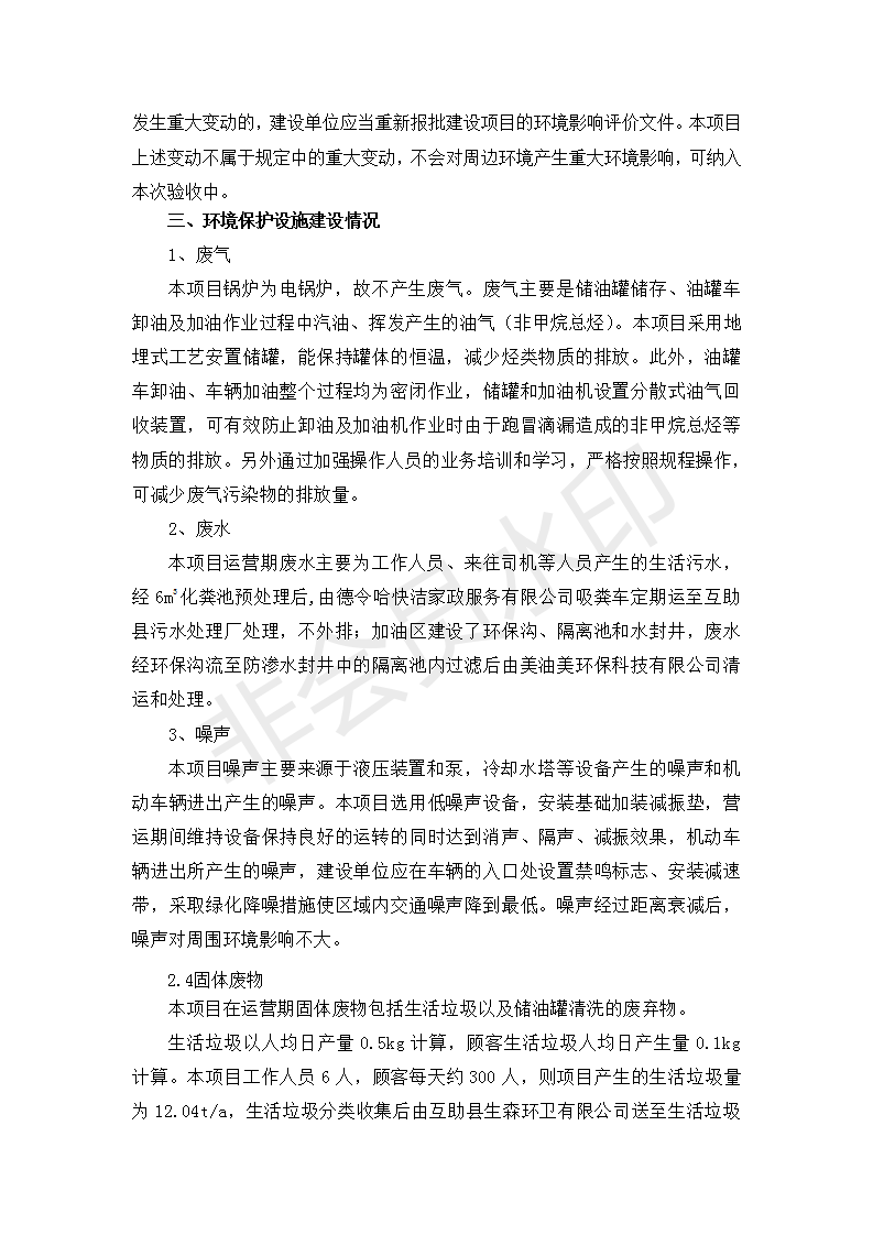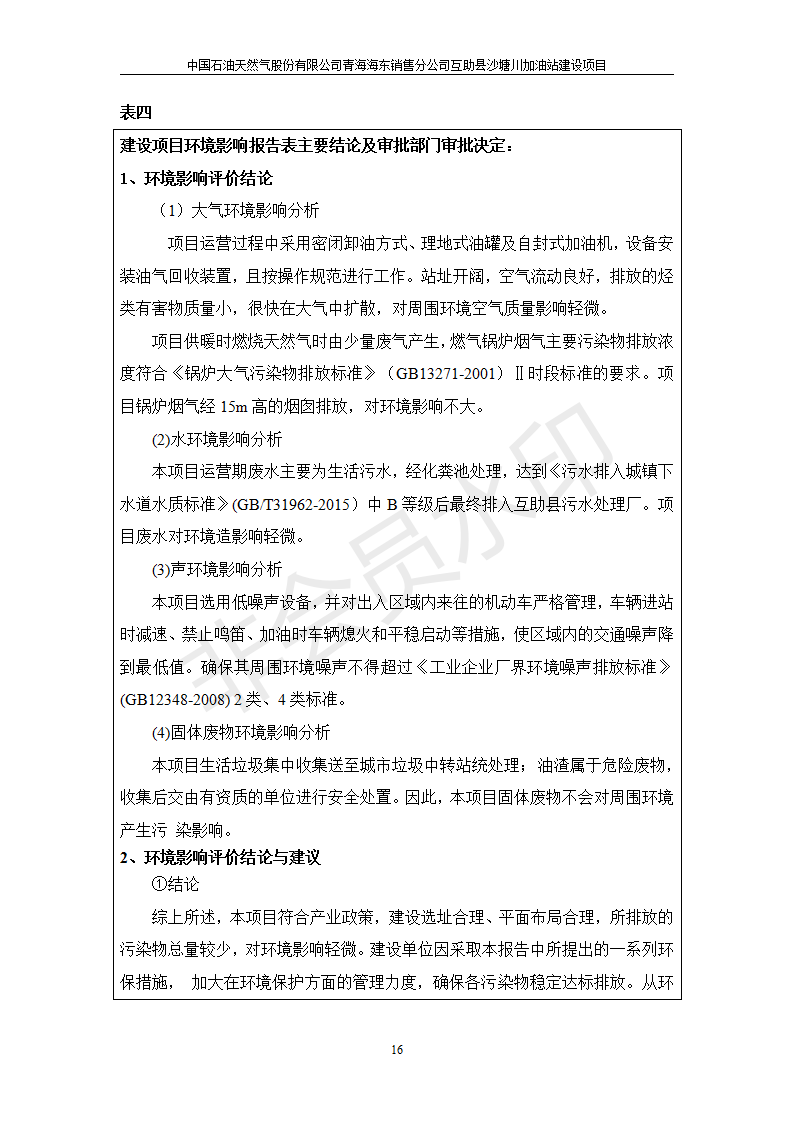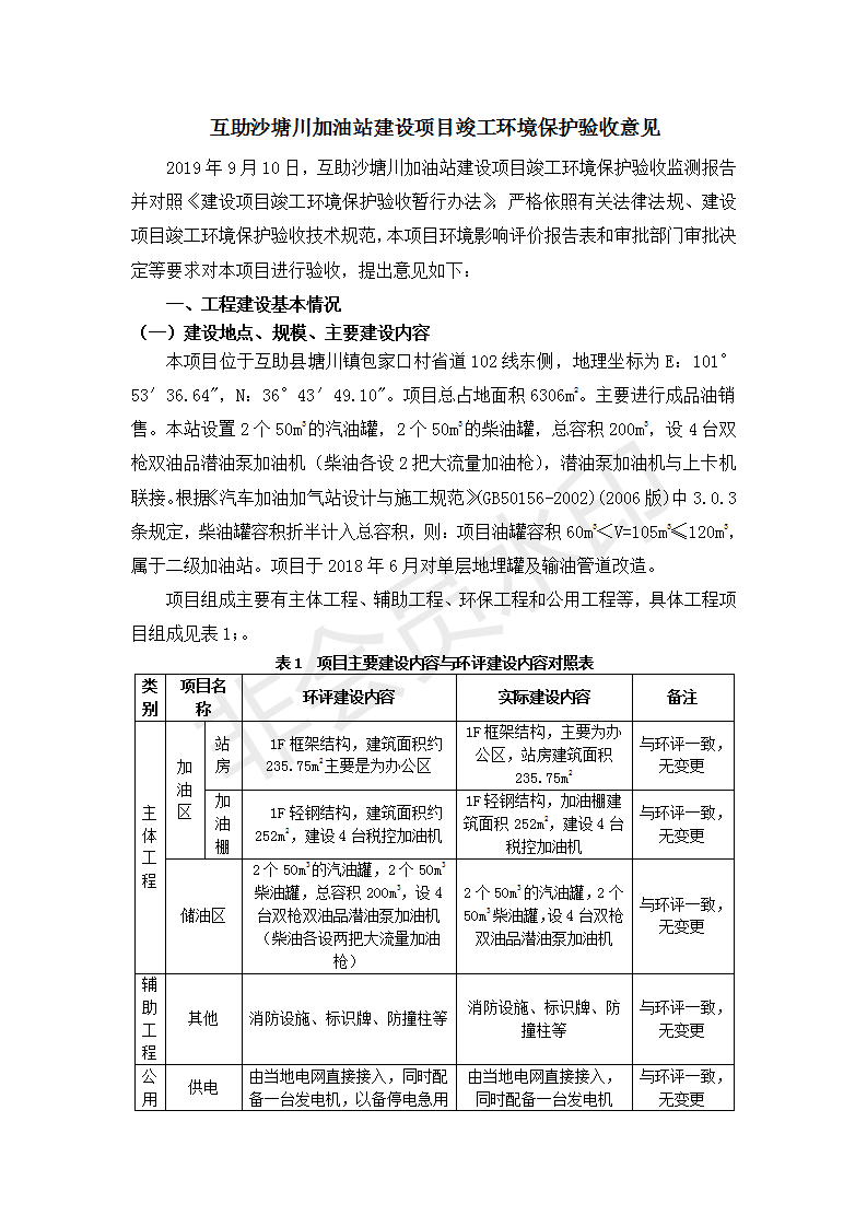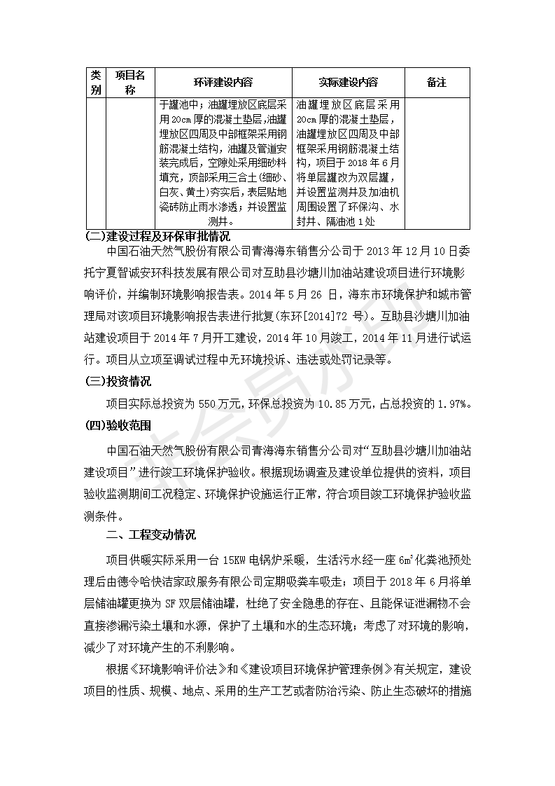 根據(jù)中華人民共和國國務(wù)院令第682號《國務(wù)院關(guān)于修改〈建設(shè)項(xiàng)目環(huán)境保護(hù)管理?xiàng)l例〉的決定》和《建設(shè)項(xiàng)目竣工環(huán)境保護(hù)驗(yàn)收暫行辦法》(國務(wù)院令682號),互助縣沙塘川加油站建設(shè)項(xiàng)目(包括竣工環(huán)境保護(hù)驗(yàn)收監(jiān)測報(bào)告表和驗(yàn)收意見)公示如下。 一、項(xiàng)目名稱:互助縣沙塘川加油站建設(shè)項(xiàng)目 二、地點(diǎn):互助縣塘川鎮(zhèn)包家口村 六、聯(lián)系電話:0971-6515411 七、公示時間:二〇一九年九月二十七日至二〇一九年十月二十九日 公示期間,對上述公示內(nèi)容如有異議,請以書面形式反饋,個人須署真實(shí)姓名,單位須加蓋公章。