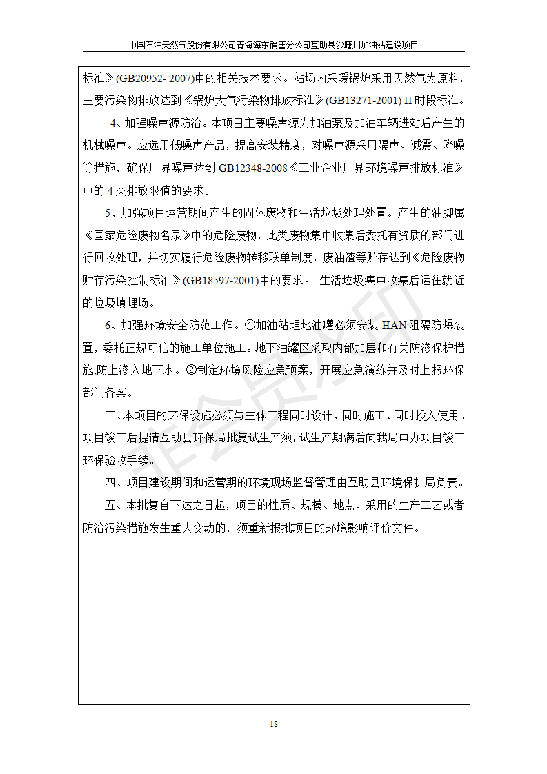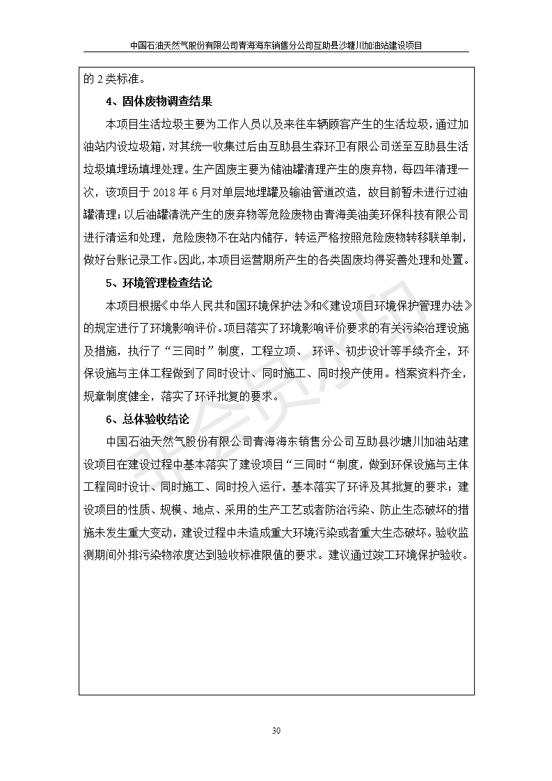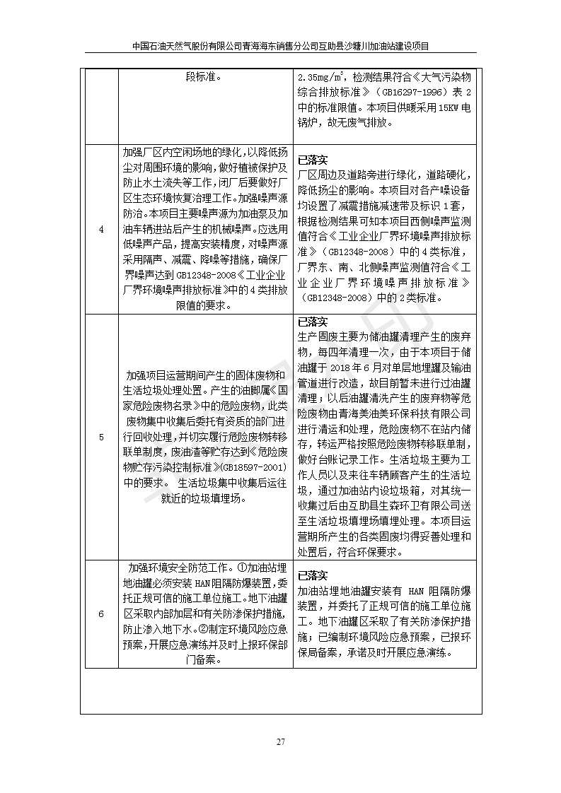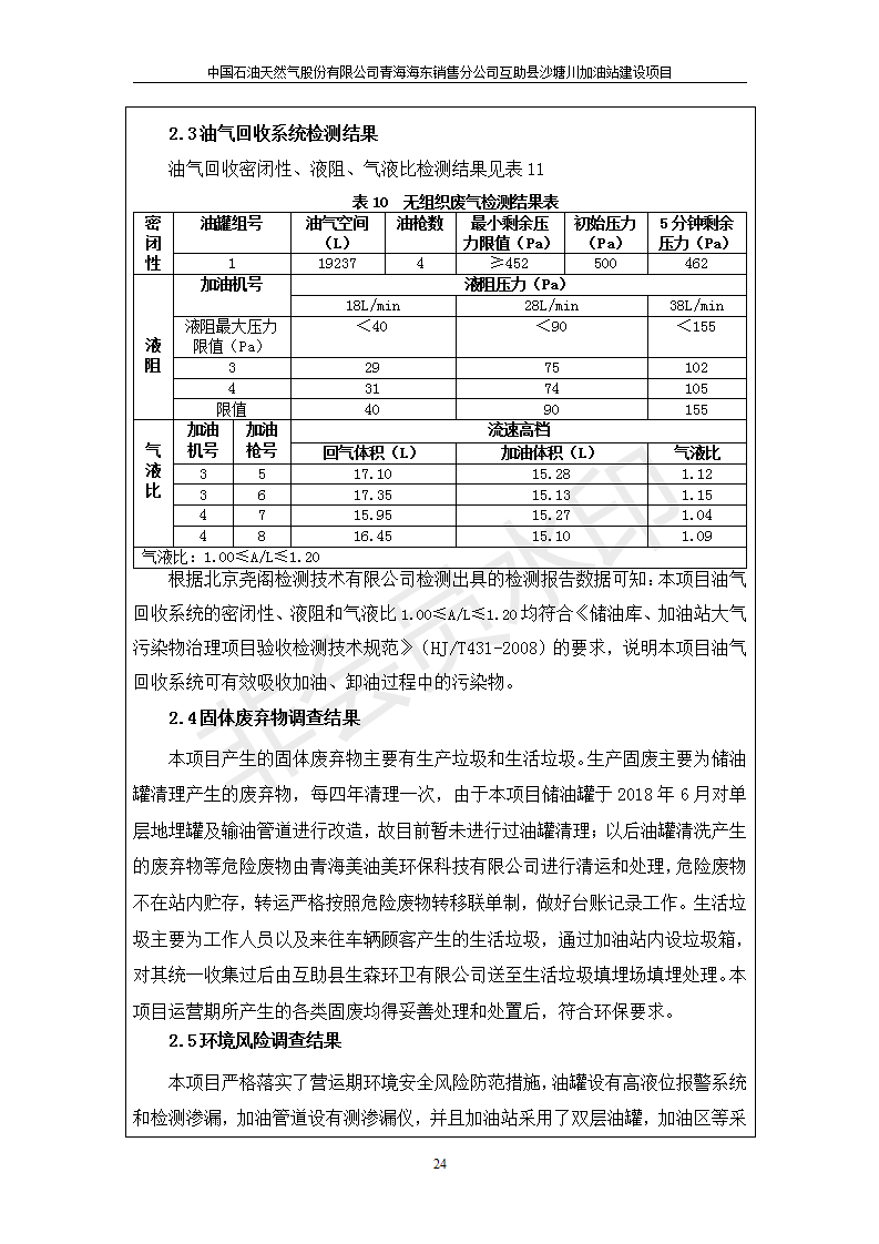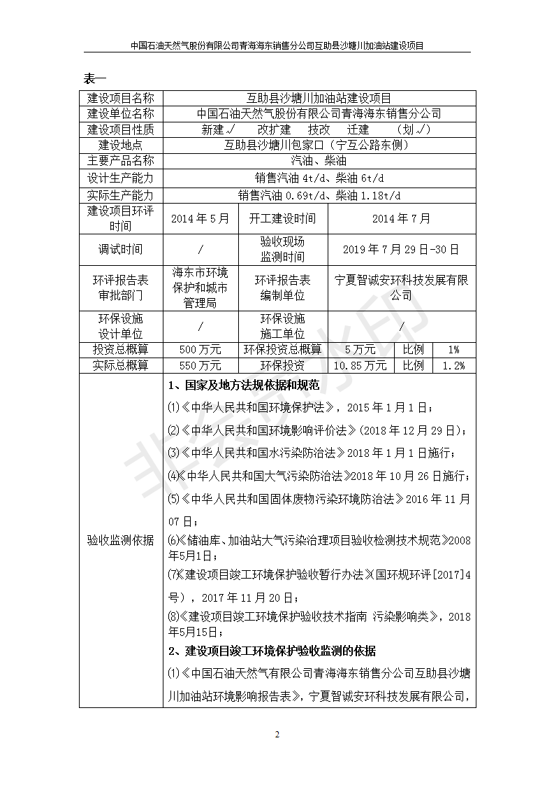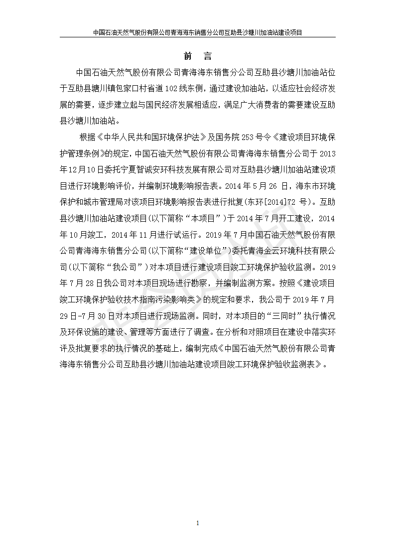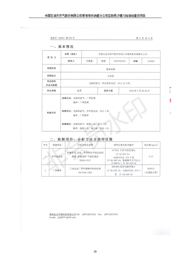 互助縣沙塘川加油站建設(shè)項(xiàng)目竣工環(huán)境保護(hù)驗(yàn)收監(jiān)測報(bào)告表發(fā)布日期:(2019-9-27) 點(diǎn)擊次數(shù):2304 |