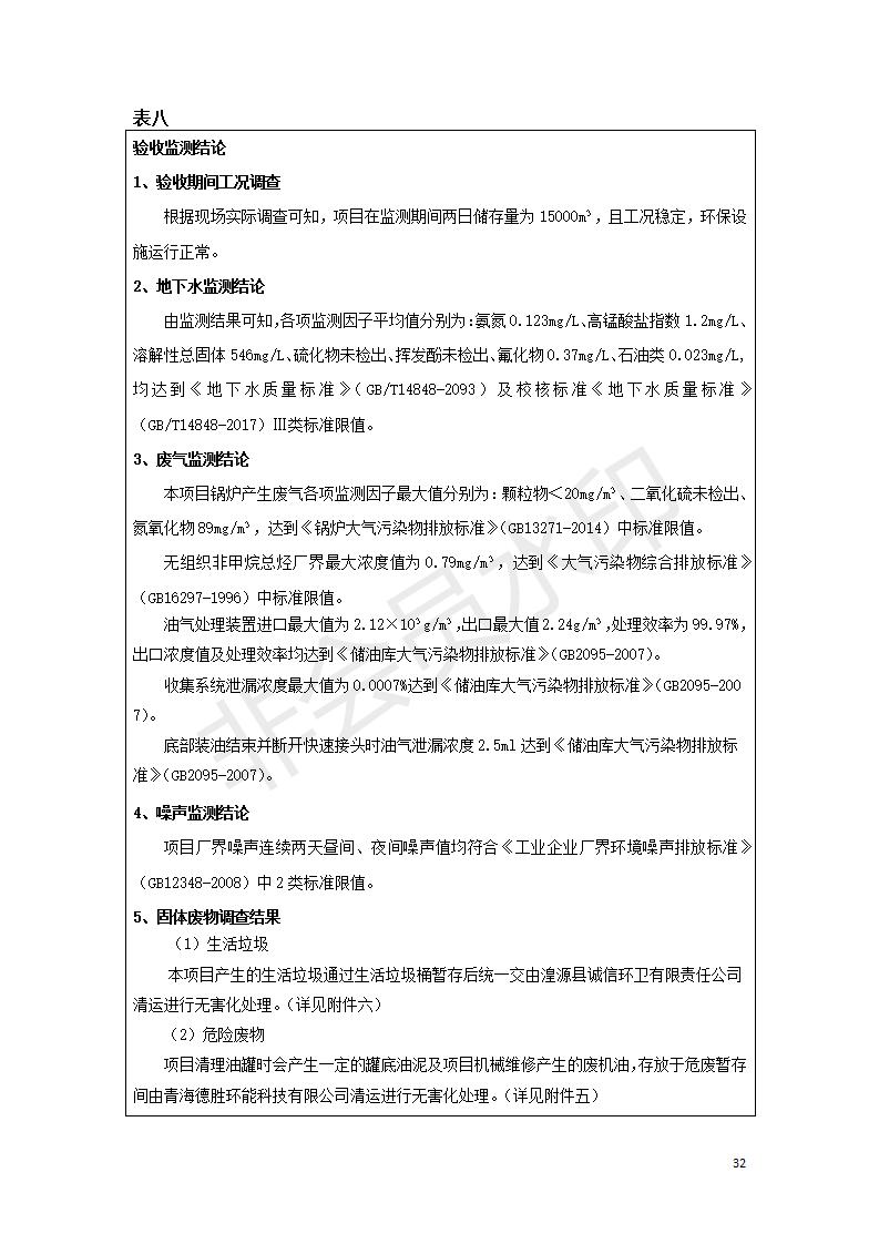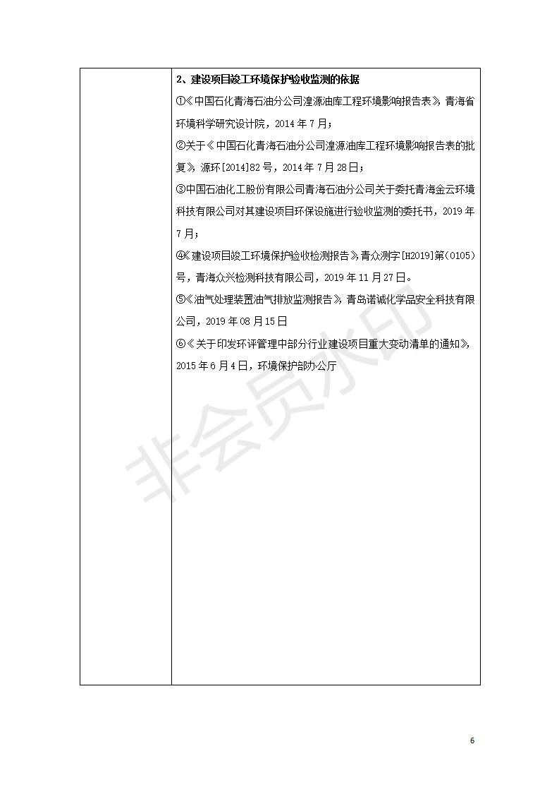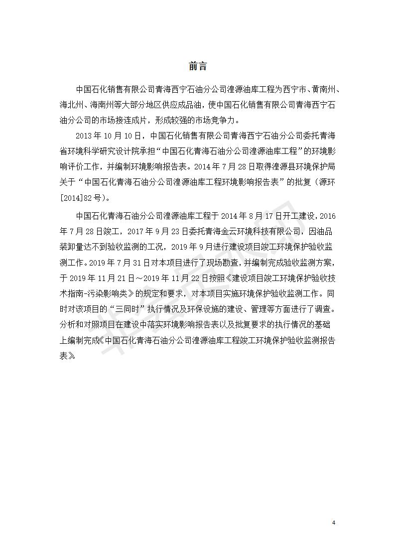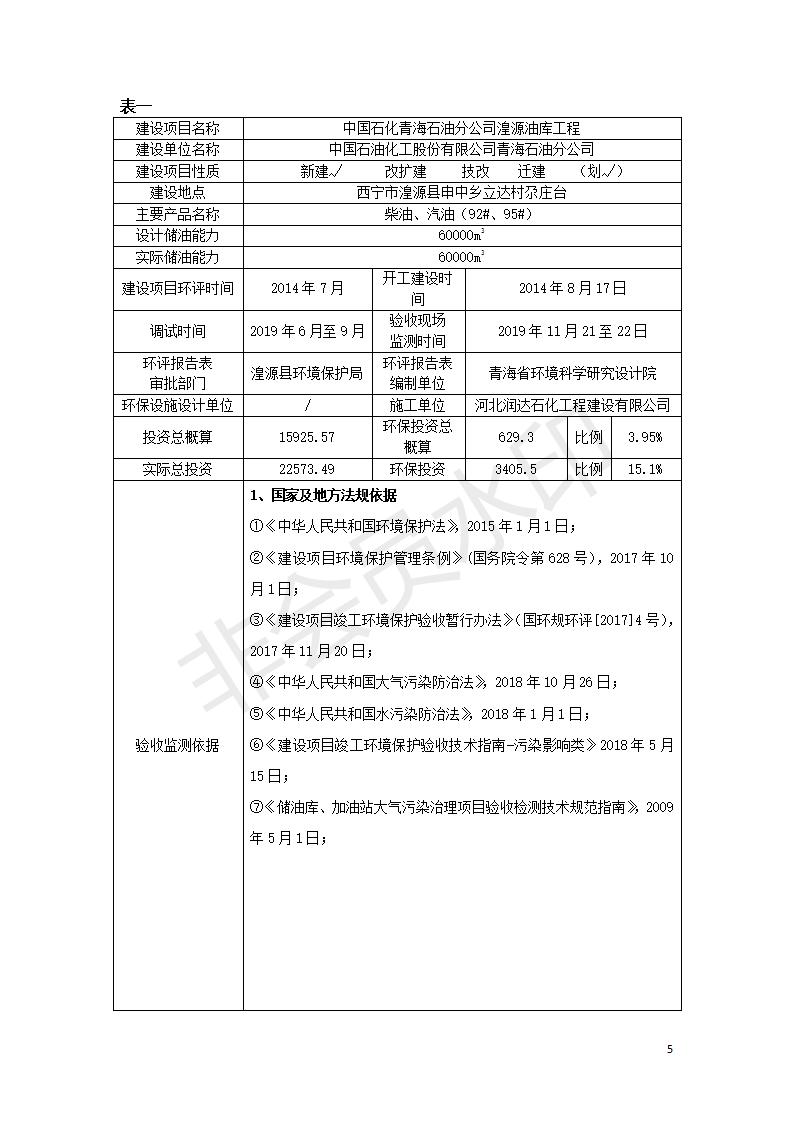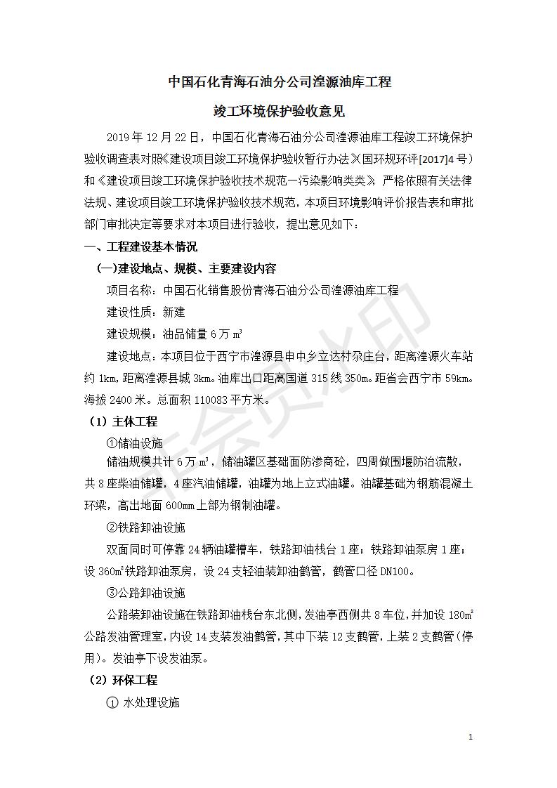 據中華人民共和國國務院令第682號《國務院關于修改〈建設項目環(huán)境保護管理條例〉的決定》和《建設項目竣工環(huán)境保護驗收暫行辦法》(國務院令682號),中國石化青海石油分公司湟源油庫工程建設項目(包括竣工環(huán)境保護驗收監(jiān)測報告表和驗收意見)公示如下。 一、項目名稱:中國石化青海石油分公司湟源油庫工程建設項目 二、地點:西寧市湟源縣申中鄉(xiāng)立達村尕莊臺 三、建設單位:中國石化銷售股份有限公司青海石油分公司 四、建設內容:油品儲量6萬m3、其他配套設施。五、聯(lián)系人:董恒棟 六、聯(lián)系電話:18697130811 七、公示時間:二〇二〇年三月十三日至二〇二〇年四月十日 公示期間,對上述公示內容如有異議,請以書面形式反饋,個人須署真實姓名,單位須加蓋公章。