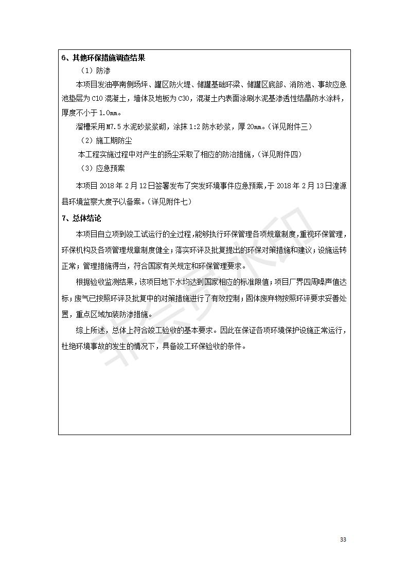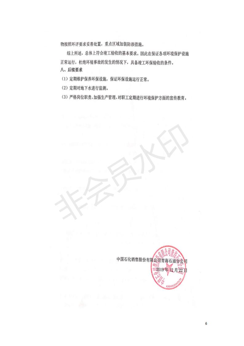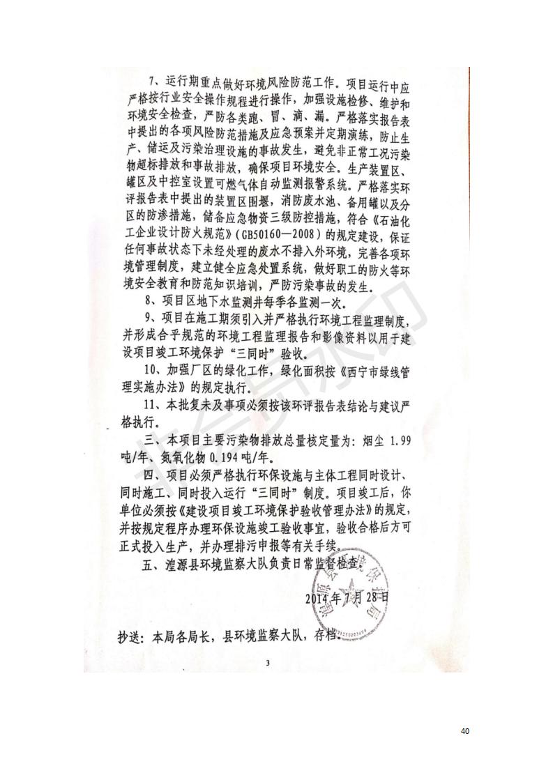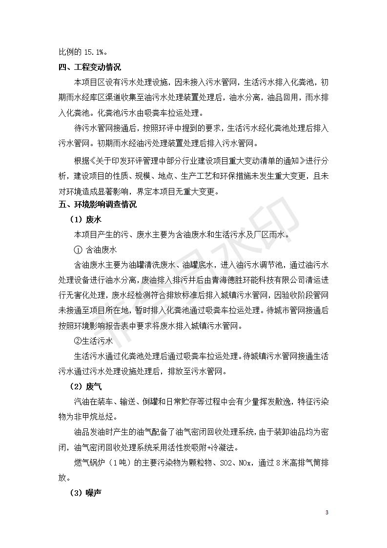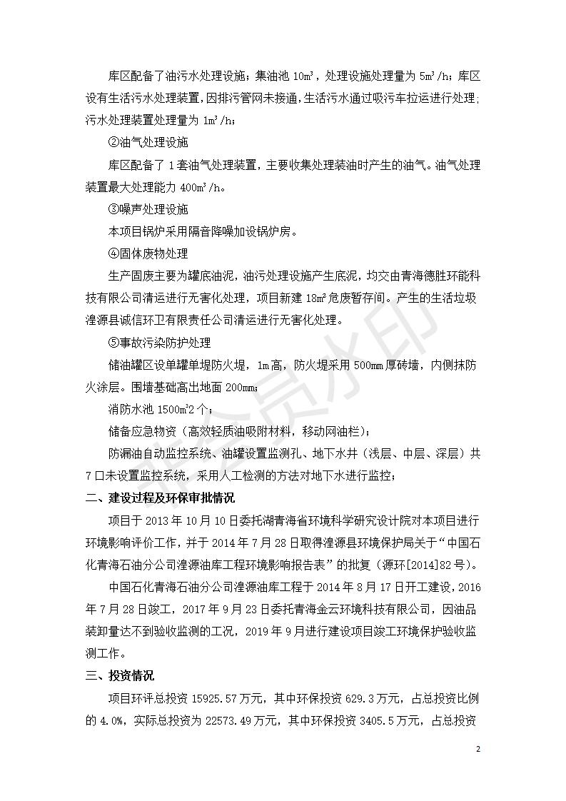 據中華人民共和國國務院令第682號《國務院關于修改〈建設項目環(huán)境保護管理條例〉的決定》和《建設項目竣工環(huán)境保護驗收暫行辦法》(國務院令682號),中國石化青海石油分公司湟源油庫工程建設項目(包括竣工環(huán)境保護驗收監(jiān)測報告表和驗收意見)公示如下。 一、項目名稱:中國石化青海石油分公司湟源油庫工程建設項目 二、地點:西寧市湟源縣申中鄉(xiāng)立達村尕莊臺 三、建設單位:中國石化銷售股份有限公司青海石油分公司 四、建設內容:油品儲量6萬m3、其他配套設施。五、聯(lián)系人:董恒棟 六、聯(lián)系電話:18697130811 七、公示時間:二〇二〇年三月十三日至二〇二〇年四月十日 公示期間,對上述公示內容如有異議,請以書面形式反饋,個人須署真實姓名,單位須加蓋公章。