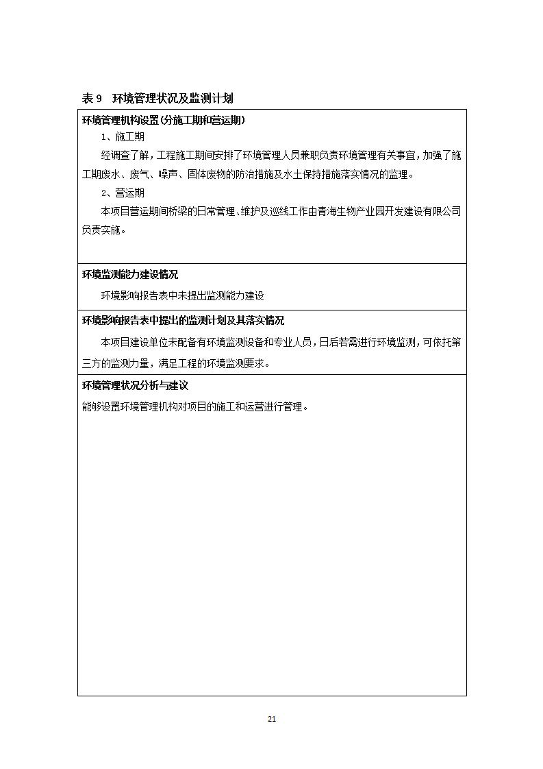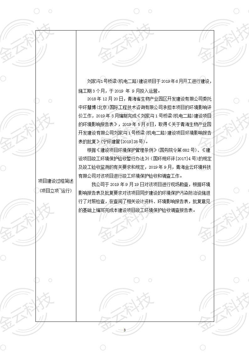 根據(jù)中華人民共和國國務(wù)院令第682號《國務(wù)院關(guān)于修改〈建設(shè)項(xiàng)目環(huán)境保護(hù)管理?xiàng)l例〉的決定》和《建設(shè)項(xiàng)目竣工環(huán)境保護(hù)驗(yàn)收暫行辦法》(國務(wù)院令682號),劉家溝1號橋梁(機(jī)電二路)建設(shè)項(xiàng)目竣工環(huán)境保護(hù)驗(yàn)收調(diào)查表,(包括竣工環(huán)境保護(hù)驗(yàn)收調(diào)查表和驗(yàn)收意見)公示如下。 一、項(xiàng)目名稱:劉家溝1號橋梁(機(jī)電二路)建設(shè)項(xiàng)目竣工環(huán)境保護(hù)驗(yàn)收調(diào)查表 二、地點(diǎn):青海省西寧市城北區(qū)生物園區(qū) 三、建設(shè)單位:青海生物產(chǎn)業(yè)園開發(fā)建設(shè)有限公司 四、建設(shè)內(nèi)容:本項(xiàng)目主要建設(shè)內(nèi)容為橋梁工程、接線路基等工程。項(xiàng)目南北走向,北起機(jī)電二路,南至寧張路,項(xiàng)目全長150m. 五、聯(lián)系人:張工 六、聯(lián)系電 話:0971-6515411 七、公示時(shí)間:二〇二〇年六月二日至二〇二〇年六月三十日 公示期間,對上述公示內(nèi)容如有異議,請以書面形式反饋,個(gè)人須署真實(shí)姓名,單位須加蓋公章。 |
