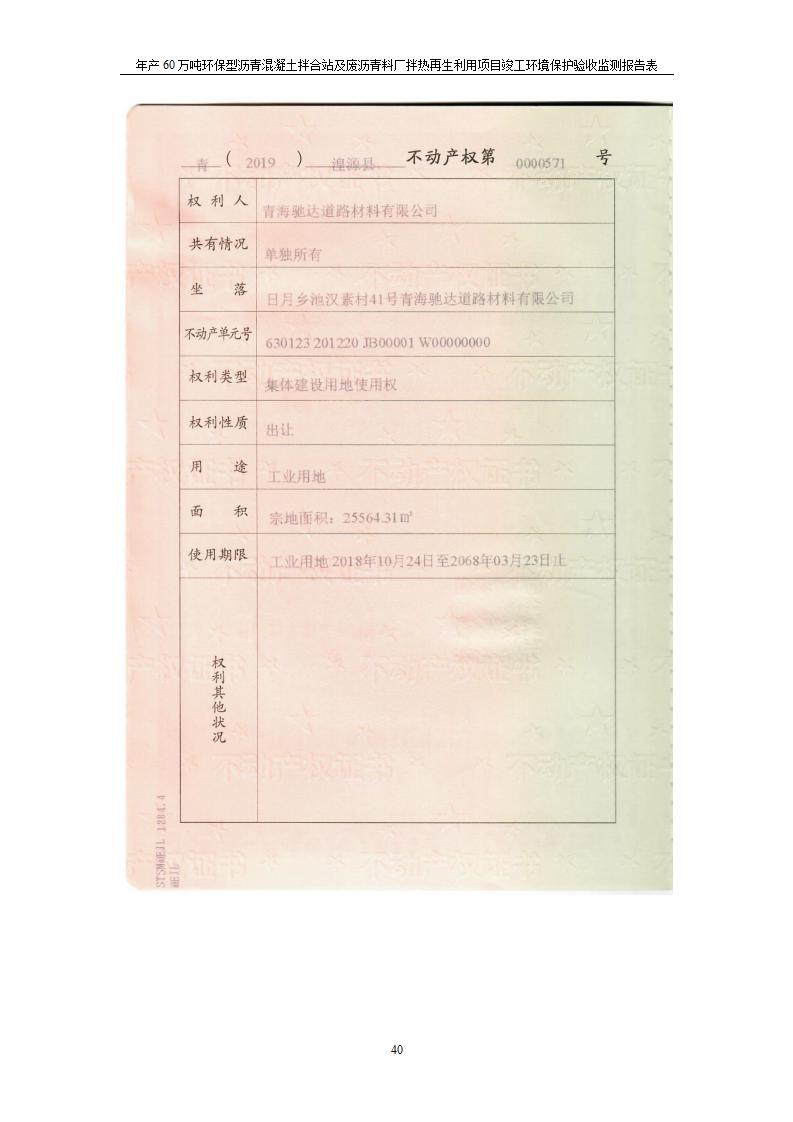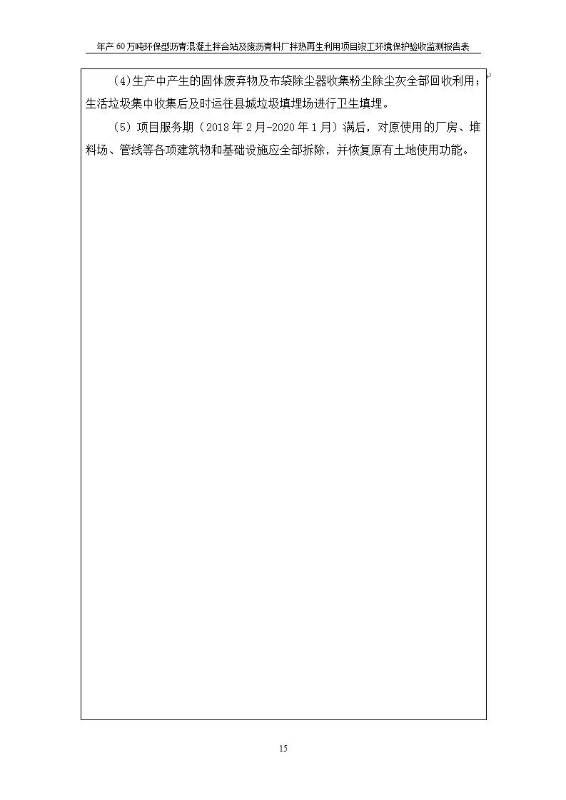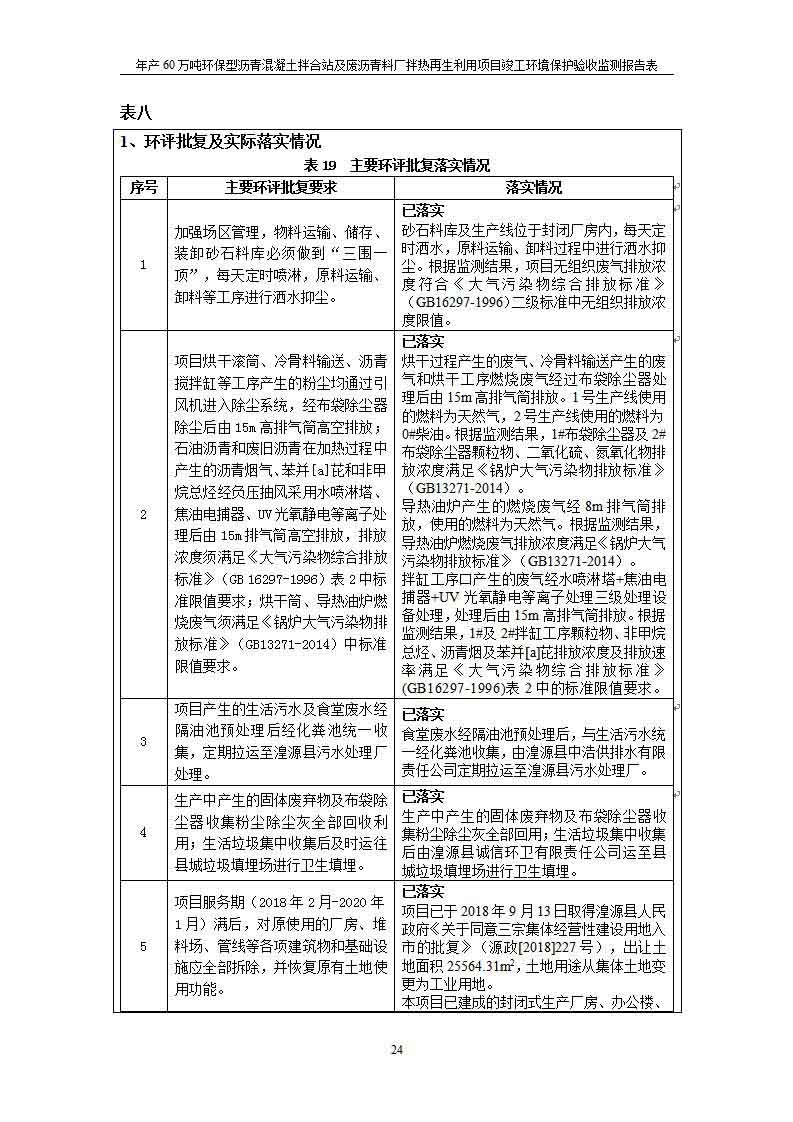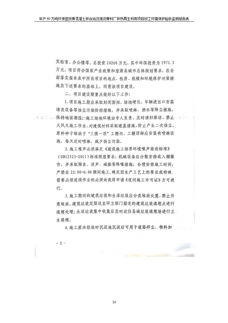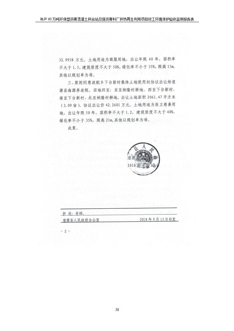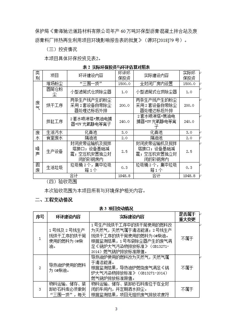 根據(jù)中華人民共和國(guó)國(guó)務(wù)院令第682號(hào)《國(guó)務(wù)院關(guān)于修改〈建設(shè)項(xiàng)目環(huán)境保護(hù)管理?xiàng)l例〉的決定》和《建設(shè)項(xiàng)目竣工環(huán)境保護(hù)驗(yàn)收暫行辦法》(國(guó)務(wù)院令682號(hào)),青海馳達(dá)道路材料有限公司年產(chǎn)60萬(wàn)噸環(huán)保型瀝青混凝土拌合站及廢瀝青料廠拌熱再生利用項(xiàng)目竣工環(huán)境保護(hù)驗(yàn)收監(jiān)測(cè)報(bào)告表公示如下。 一、項(xiàng)目名稱:年產(chǎn)60萬(wàn)噸環(huán)保型瀝青混凝土拌合站及廢瀝青料廠拌熱再生利用項(xiàng)目竣工環(huán)境保護(hù)驗(yàn)收監(jiān)測(cè)報(bào)告表 二、地點(diǎn):湟源縣日月藏族鄉(xiāng)池漢素村 三、建設(shè)單位:青海馳達(dá)道路材料有限公司 四、建設(shè)內(nèi)容:本項(xiàng)目共有2條瀝青砼生產(chǎn)線及1條穩(wěn)定土生產(chǎn)線,配套辦公樓等。 五、聯(lián)系人:楊工 六、聯(lián)系電 話:0971-6515411 七、公示時(shí)間:二〇二〇年七月六日至二〇二〇年七月三十一日 公示期間,對(duì)上述公示內(nèi)容如有異議,請(qǐng)以書(shū)面形式反饋,個(gè)人須署真實(shí)姓名,單位須加蓋公章。