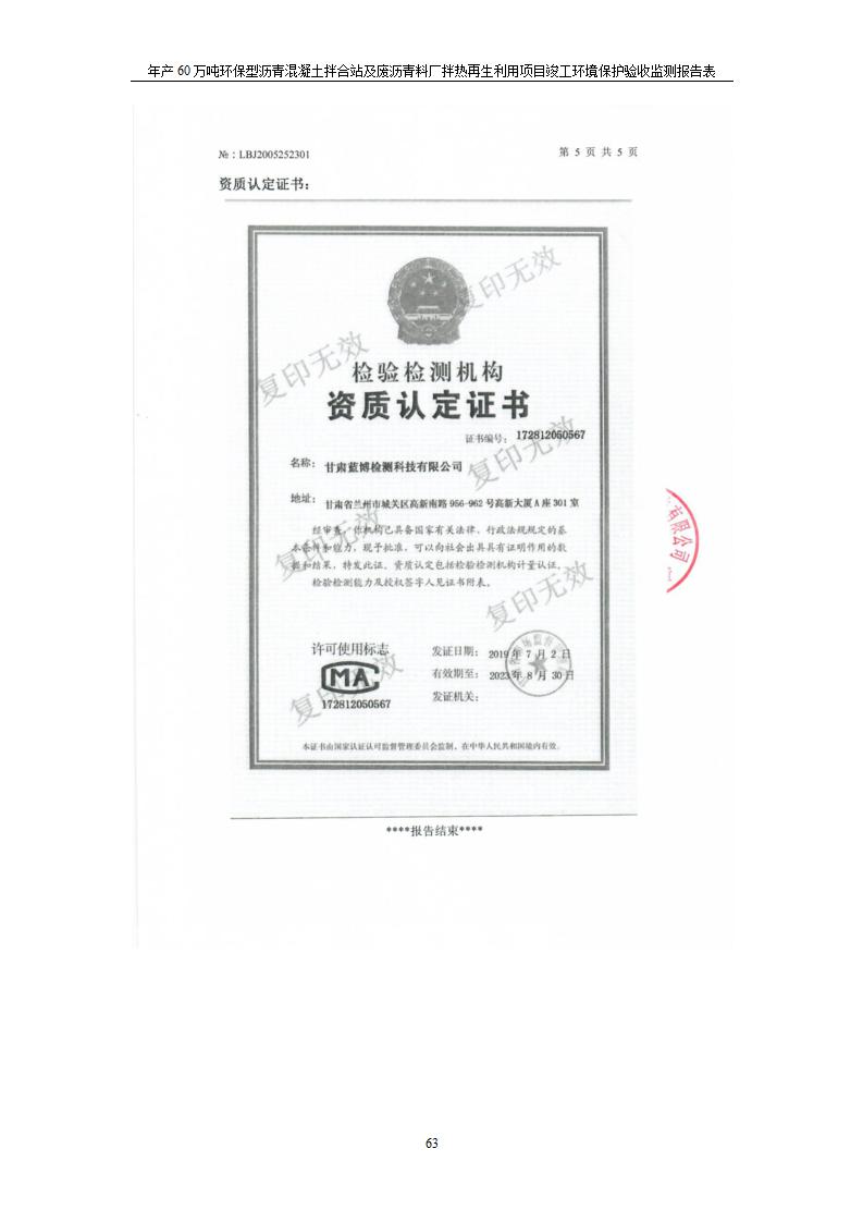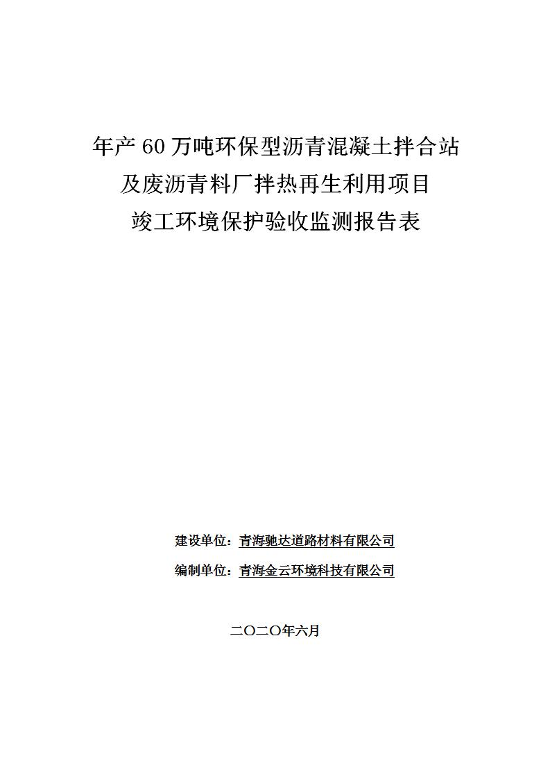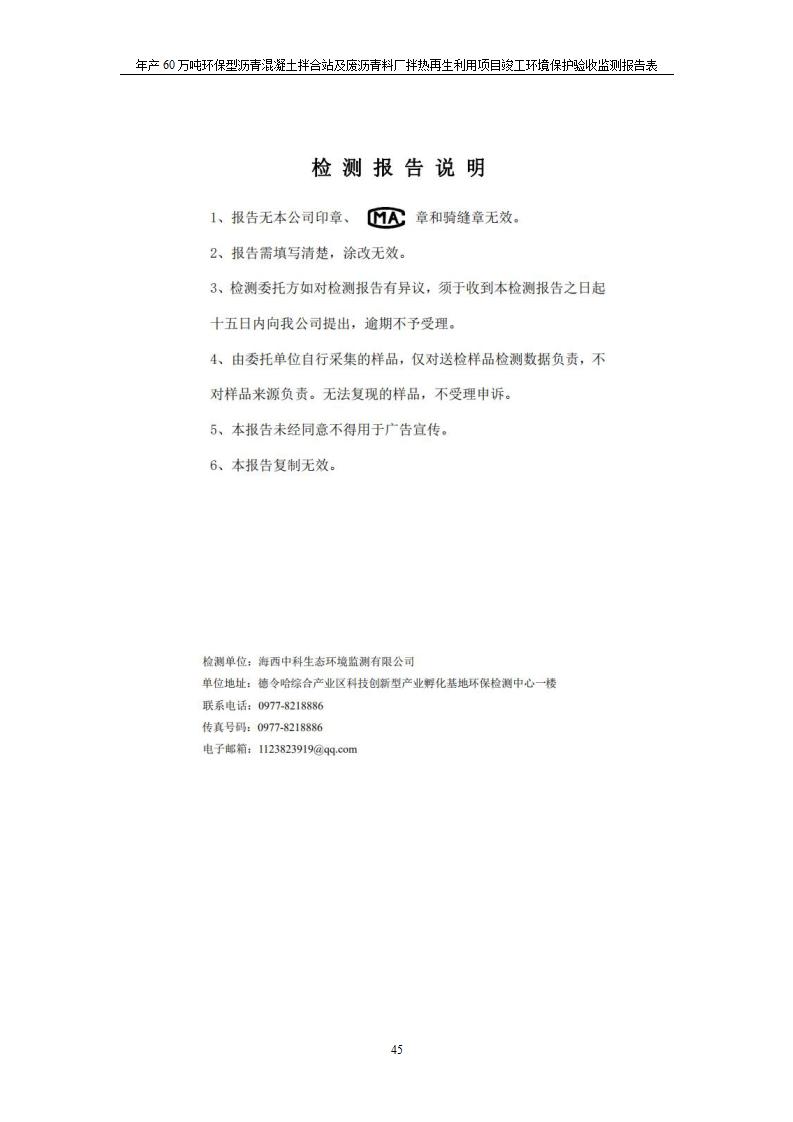 年產(chǎn)60萬(wàn)噸環(huán)保型瀝青混凝土拌合站及廢瀝青料廠拌熱再生利用項(xiàng)目竣工環(huán)境保護(hù)驗(yàn)收監(jiān)測(cè)報(bào)告表公示發(fā)布日期:(2020-7-6) 點(diǎn)擊次數(shù):4047 |