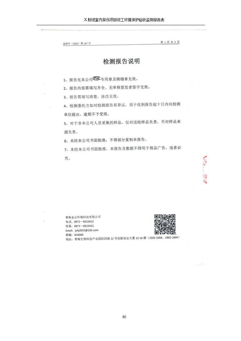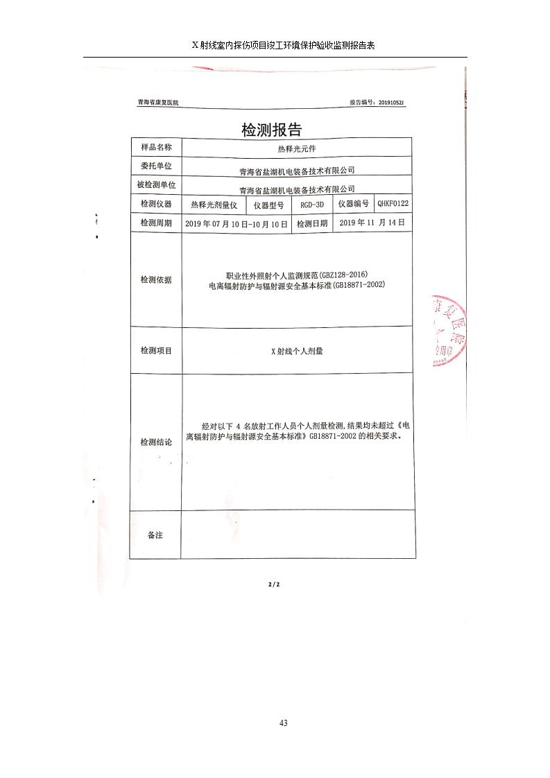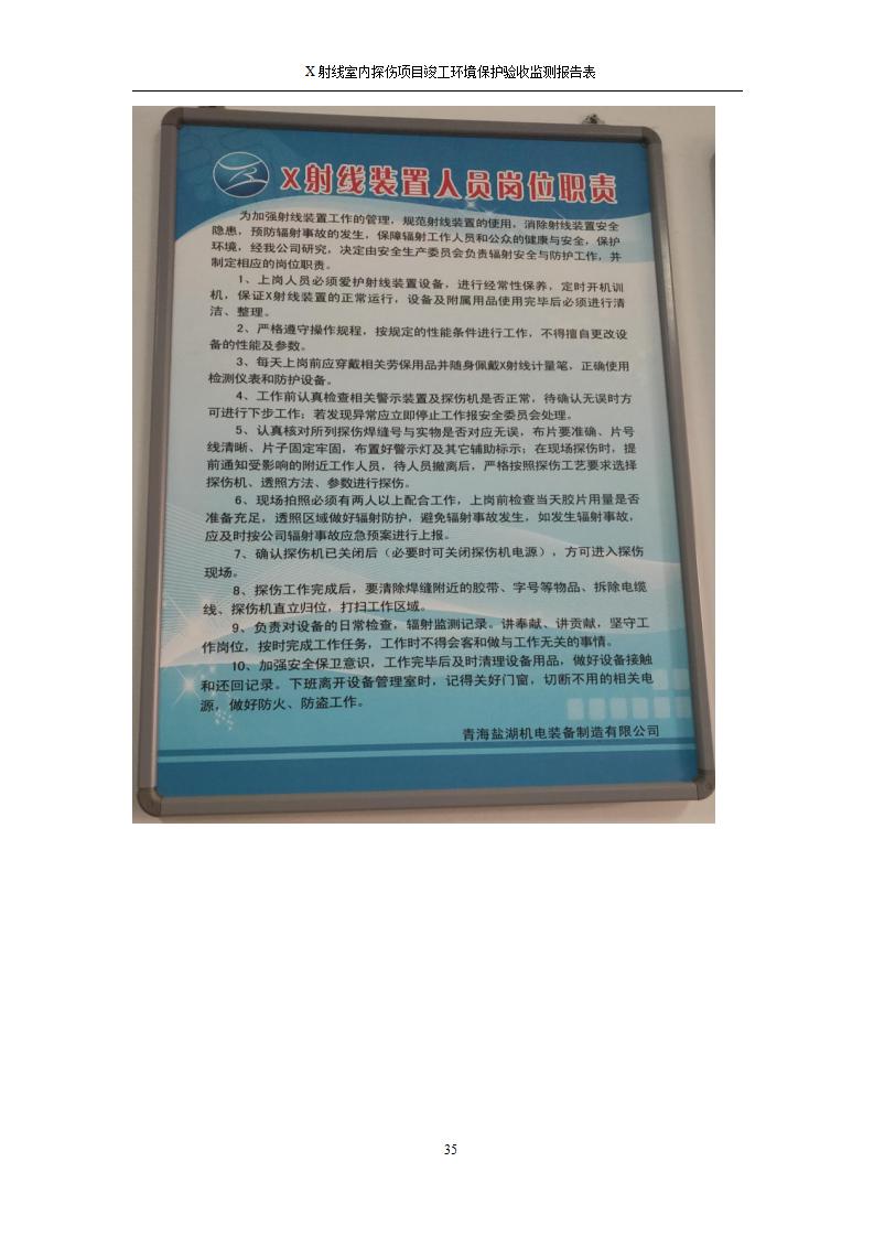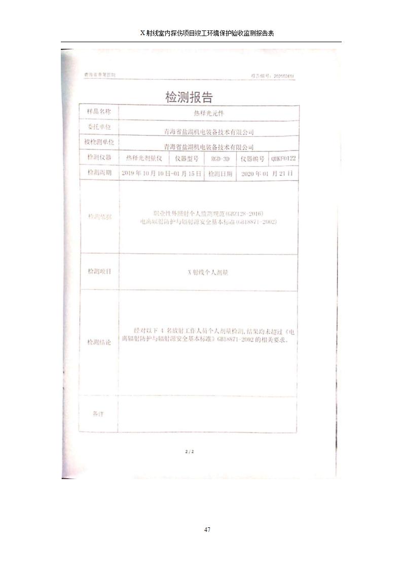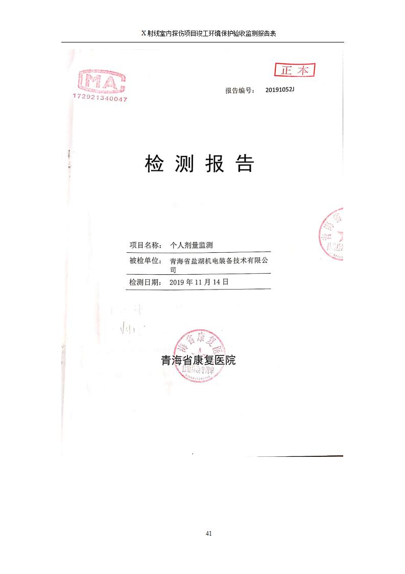 青海鹽湖機電裝備技術(shù)有限公司X射線室內(nèi)探傷項目竣工環(huán)境保護驗收監(jiān)測報告表公示發(fā)布日期:(2020-7-10) 點擊次數(shù):3417 |