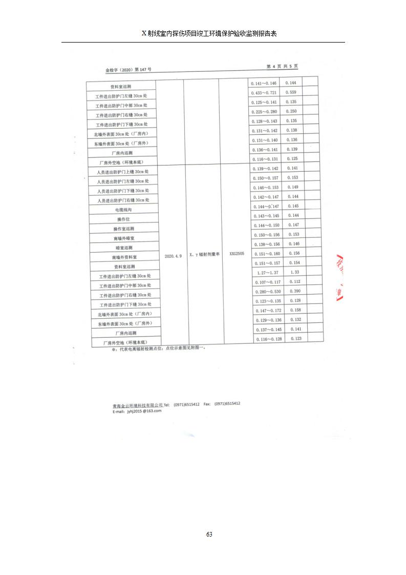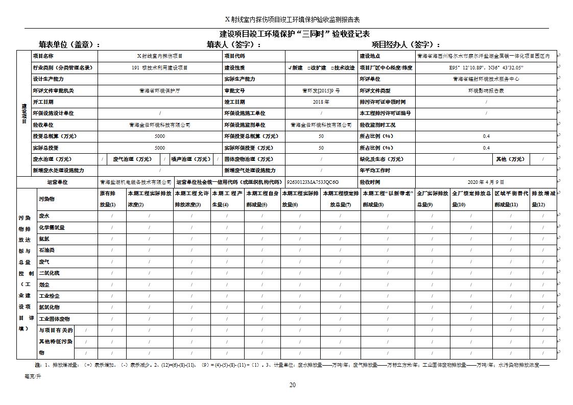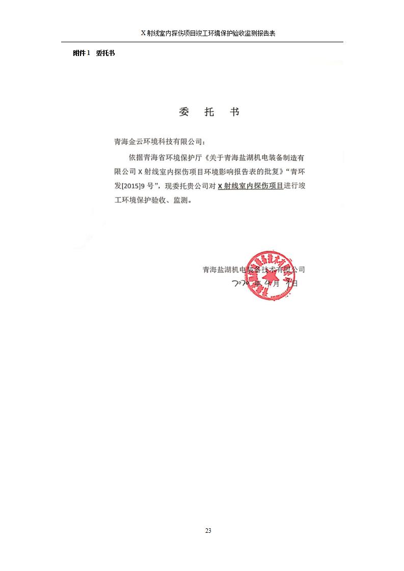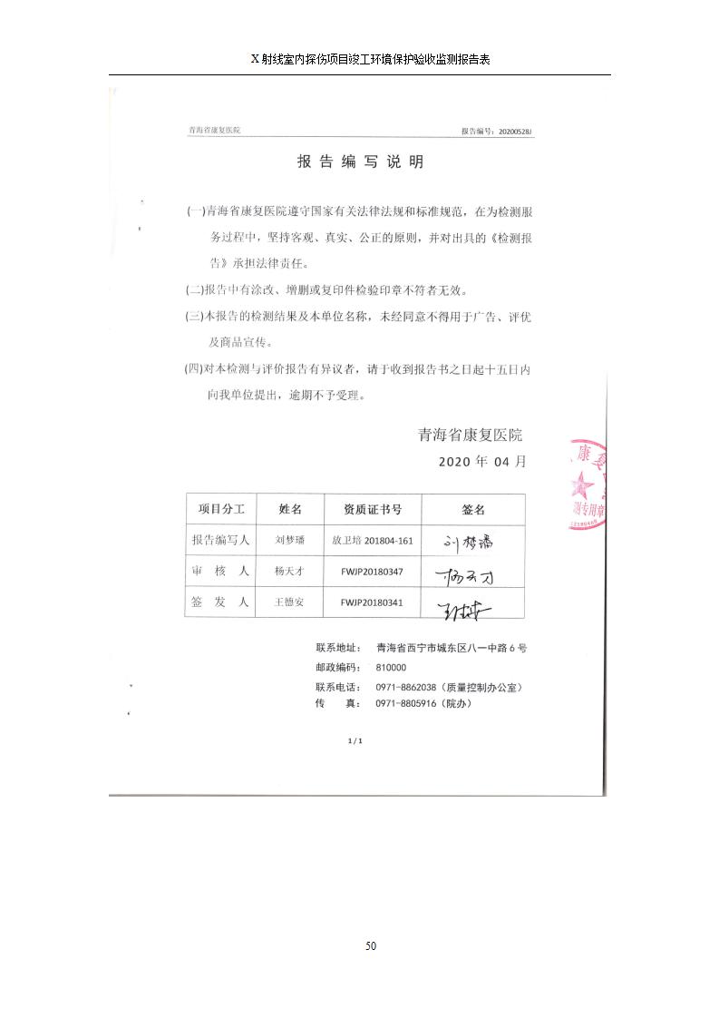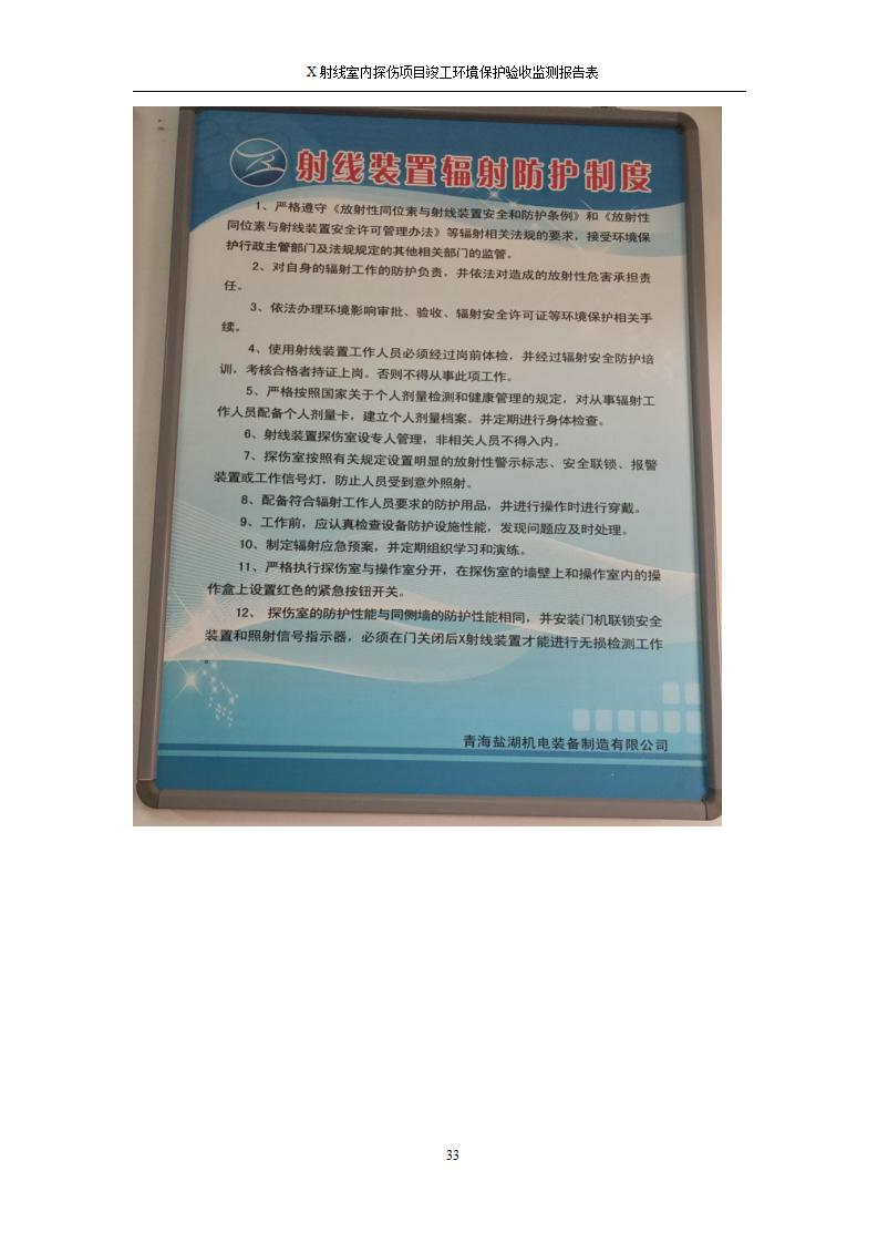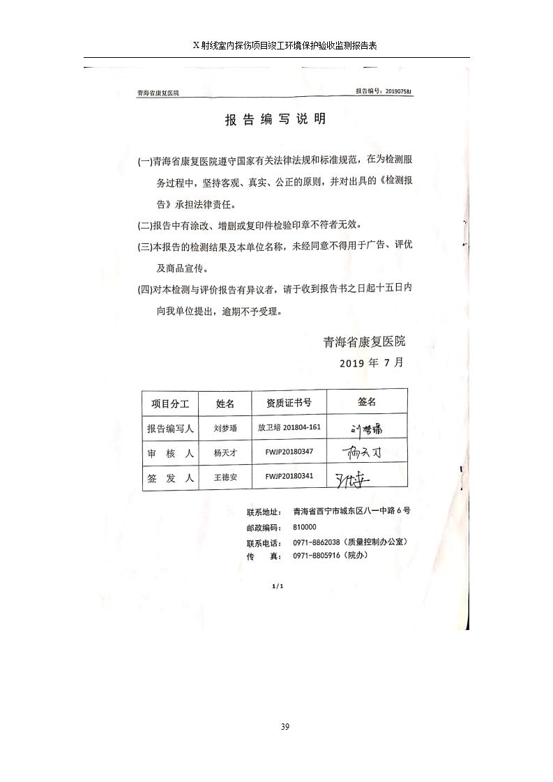 青海鹽湖機電裝備技術(shù)有限公司X射線室內(nèi)探傷項目竣工環(huán)境保護驗收監(jiān)測報告表公示發(fā)布日期:(2020-7-10) 點擊次數(shù):3417 |