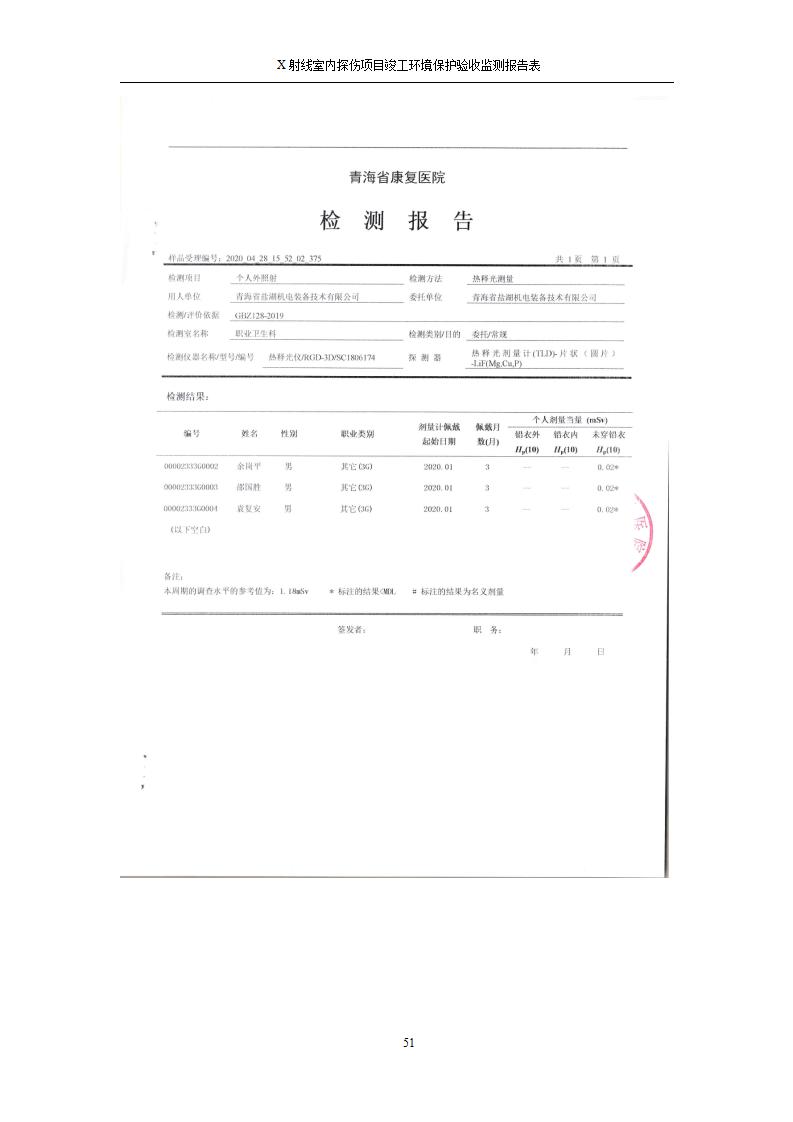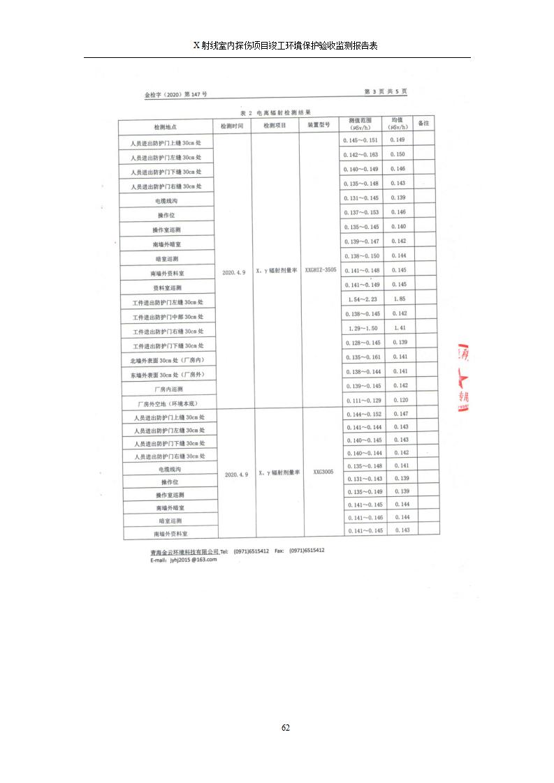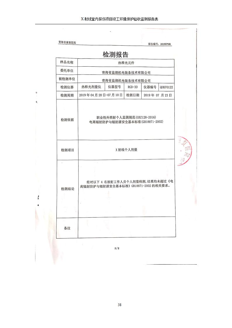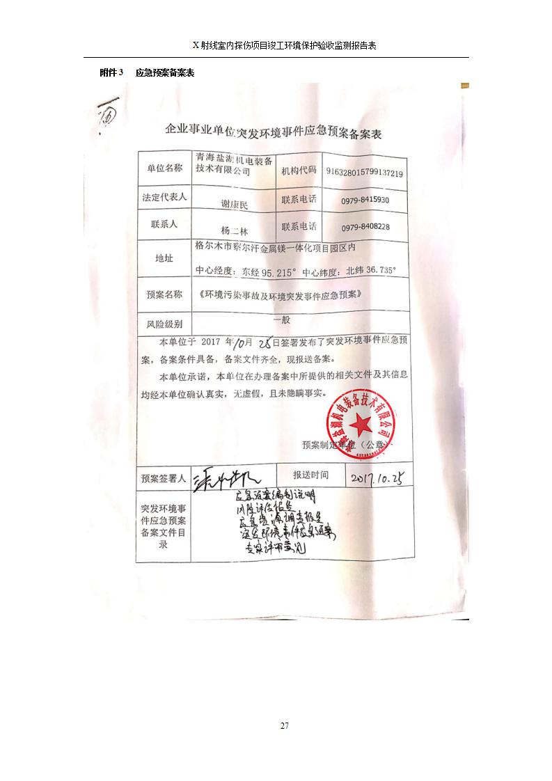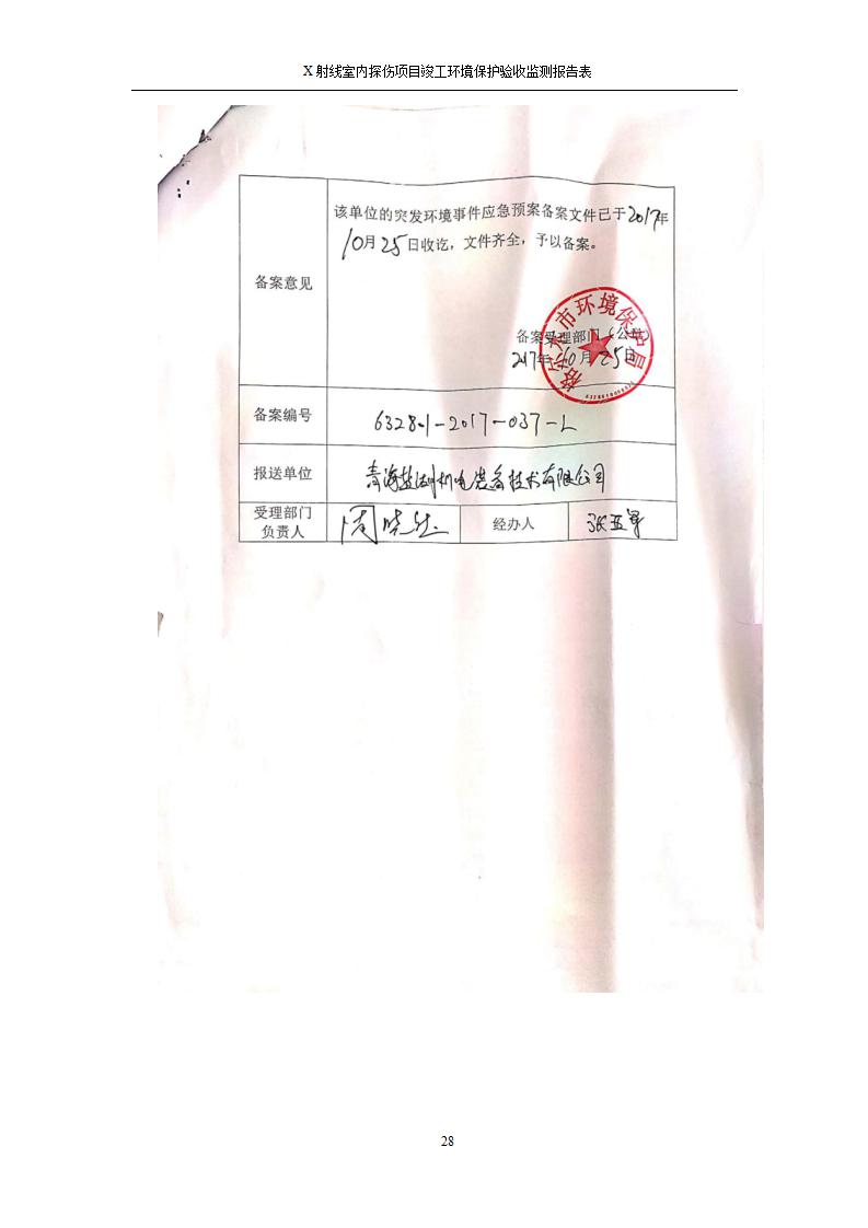 青海鹽湖機電裝備技術(shù)有限公司X射線室內(nèi)探傷項目竣工環(huán)境保護驗收監(jiān)測報告表公示發(fā)布日期:(2020-7-10) 點擊次數(shù):3417 |