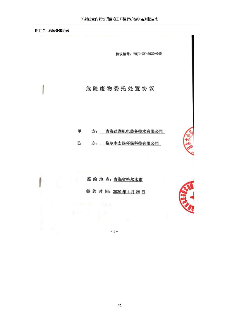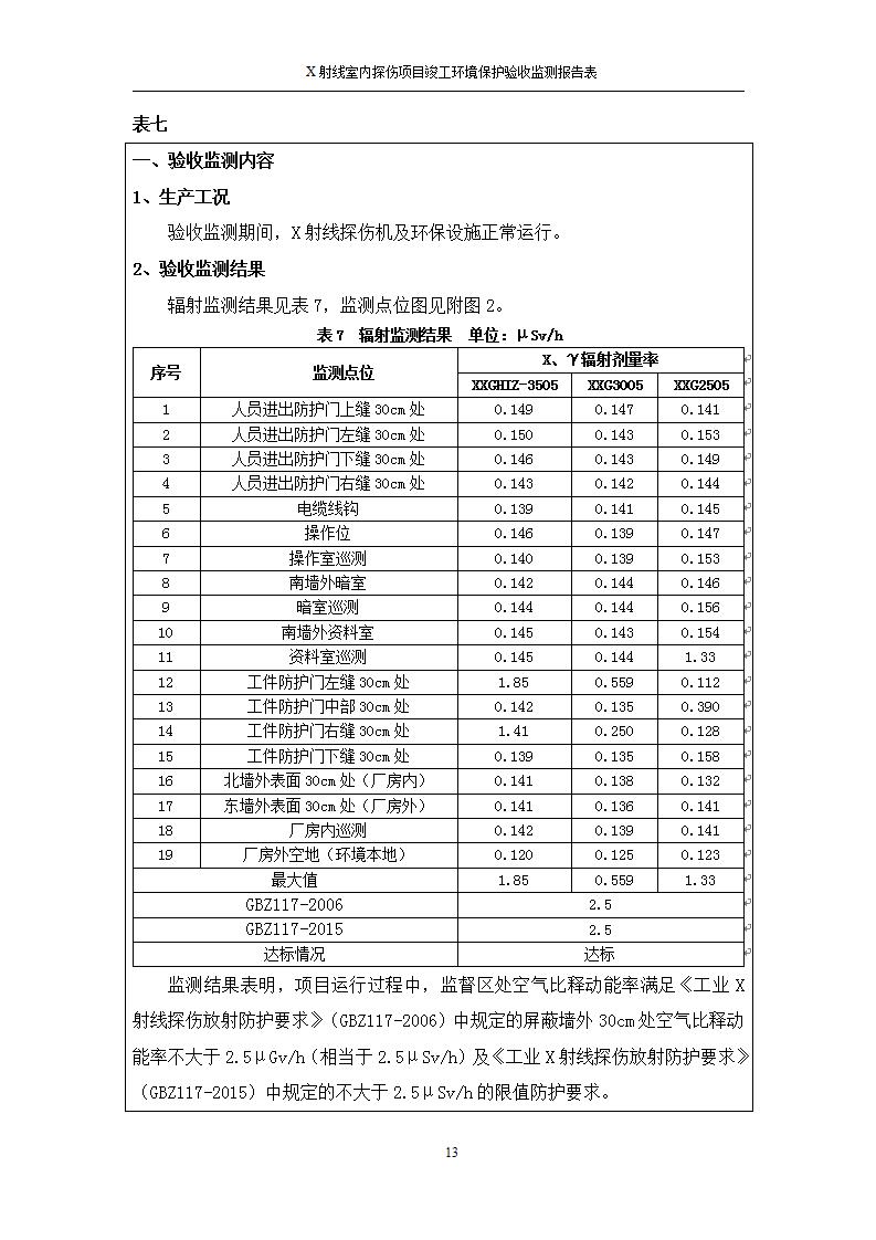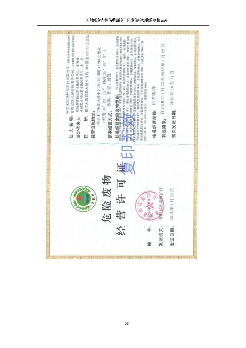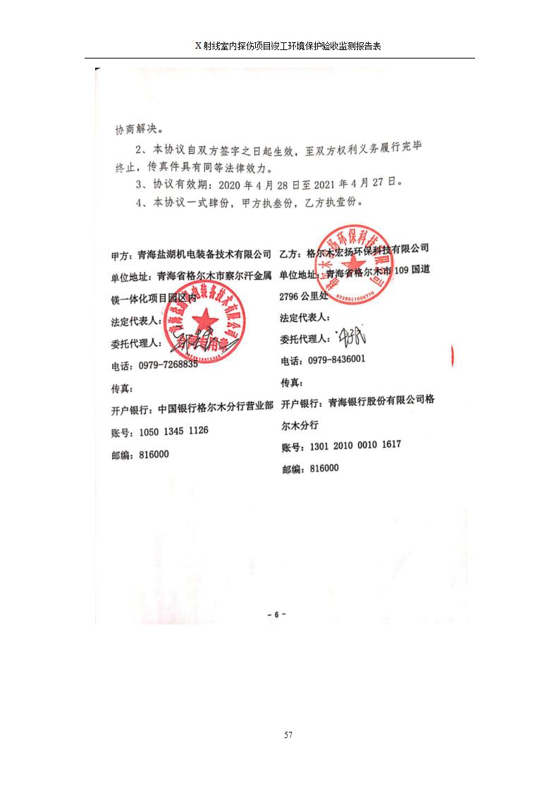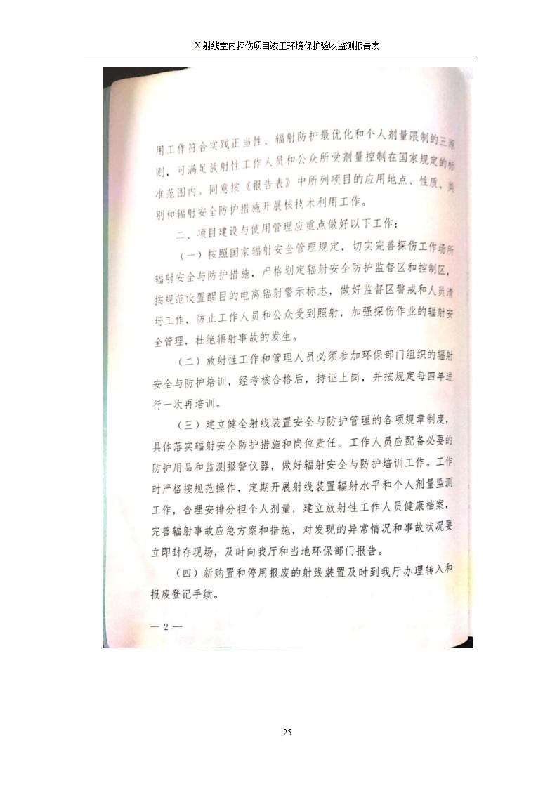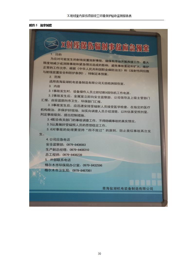 根據(jù)中華人民共和國國務院令第682號《國務院關(guān)于修改〈建設項目環(huán)境保護管理條例〉的決定》和《建設項目竣工環(huán)境保護驗收暫行辦法》(國務院令682號),青海鹽湖機電裝備技術(shù)有限公司X射線室內(nèi)探傷項目竣工環(huán)境保護驗收監(jiān)測報告表公示如下。 一、項目名稱:X射線室內(nèi)探傷項目竣工環(huán)境保護驗收監(jiān)測報告表 二、地點:青海省海西州格爾木市察爾汗鹽湖金屬鎂一體化項目園區(qū)內(nèi) 三、建設單位:青海鹽湖機電裝備技術(shù)有限公司 四、建設內(nèi)容:本項目位于公司三號車間廠房內(nèi),探傷室長21m,寬9.3m,共有3臺X射線探傷機。 五、聯(lián)系人:楊工 六、聯(lián)系電 話:0971-6515411 七、公示時間:二〇二〇年七月十日至二〇二〇年八月六日 公示期間,對上述公示內(nèi)容如有異議,請以書面形式反饋,個人須署真實姓名,單位須加蓋公章。