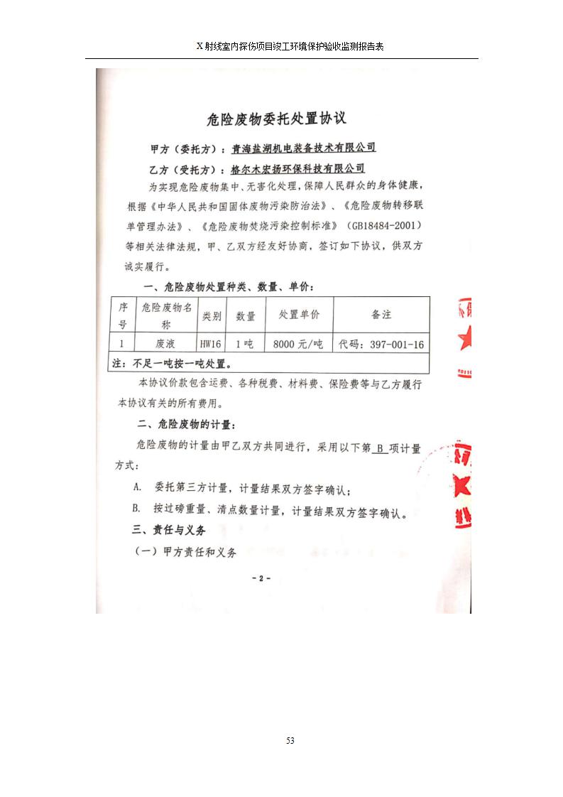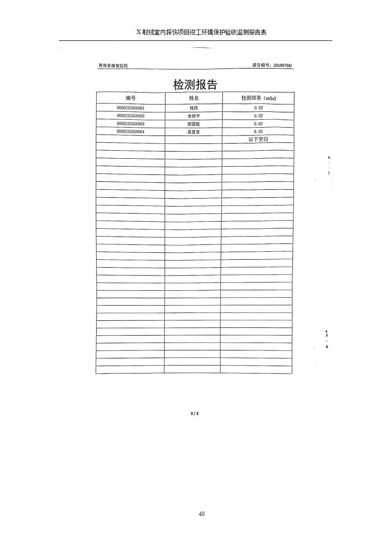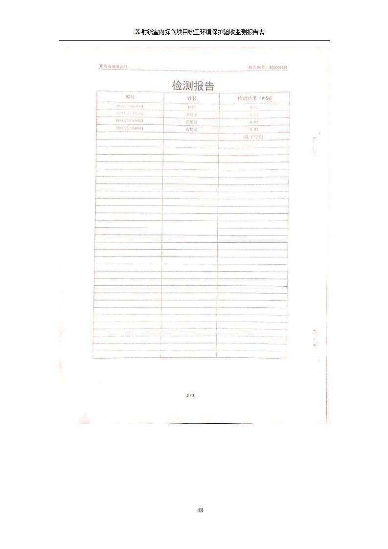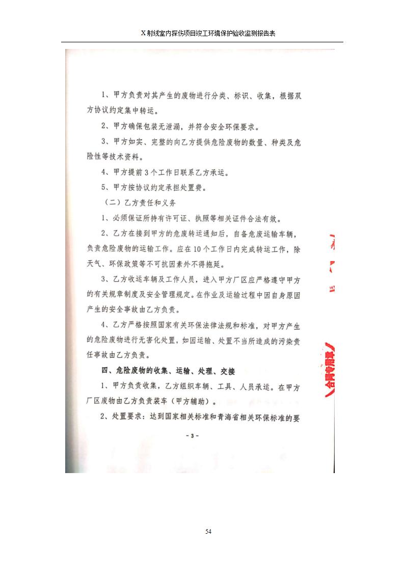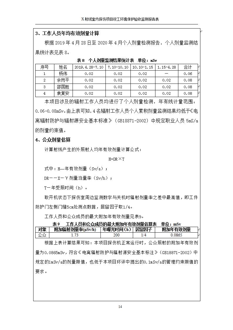 根據(jù)中華人民共和國國務院令第682號《國務院關(guān)于修改〈建設項目環(huán)境保護管理條例〉的決定》和《建設項目竣工環(huán)境保護驗收暫行辦法》(國務院令682號),青海鹽湖機電裝備技術(shù)有限公司X射線室內(nèi)探傷項目竣工環(huán)境保護驗收監(jiān)測報告表公示如下。 一、項目名稱:X射線室內(nèi)探傷項目竣工環(huán)境保護驗收監(jiān)測報告表 二、地點:青海省海西州格爾木市察爾汗鹽湖金屬鎂一體化項目園區(qū)內(nèi) 三、建設單位:青海鹽湖機電裝備技術(shù)有限公司 四、建設內(nèi)容:本項目位于公司三號車間廠房內(nèi),探傷室長21m,寬9.3m,共有3臺X射線探傷機。 五、聯(lián)系人:楊工 六、聯(lián)系電 話:0971-6515411 七、公示時間:二〇二〇年七月十日至二〇二〇年八月六日 公示期間,對上述公示內(nèi)容如有異議,請以書面形式反饋,個人須署真實姓名,單位須加蓋公章。